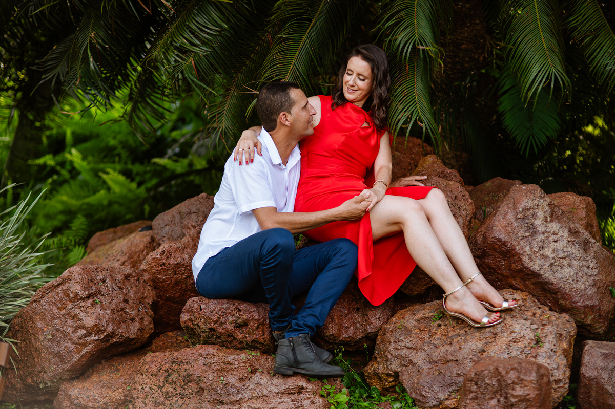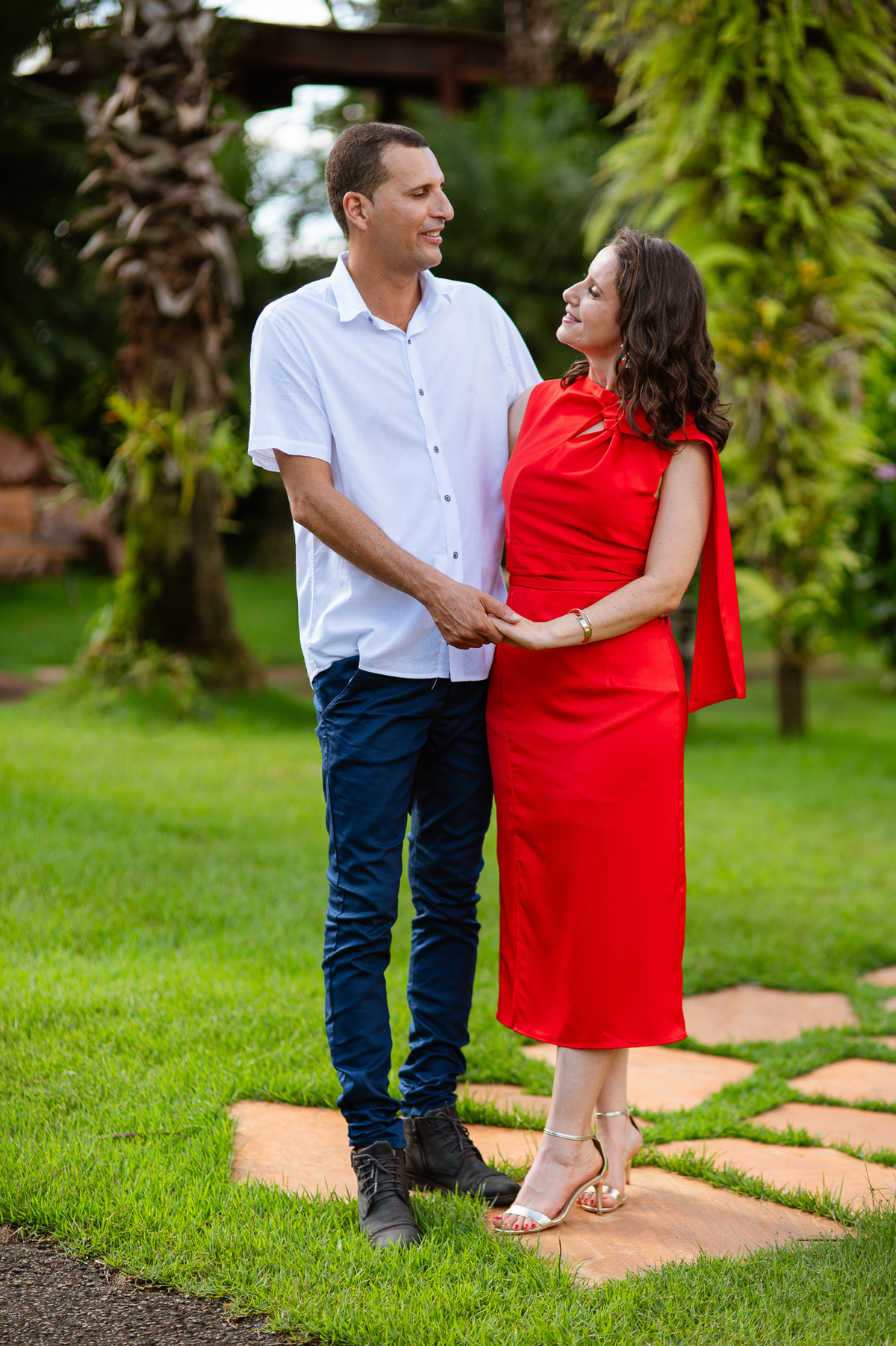 Passeamos por todos os locais e a cada look o lugar parecia encaixar ainda mais com tudo. Vestido longo, vestido rodado, saia, camisa, tudo estava combinando. Até mesmo as pedras empilhadas que fazem parte da decoração foi utilizada e rendeu ótimos cliques. Uma mistura entre chique e rústico que nos trouxe ótimos resultados. Passeamos também pelo estacionamento e a cada clique, Alencar e Valéria iam se soltando cada vez mais. Ao fim, perguntei aos dois sobre o que haviam achado de quando eu falei que o ensaio seria um passeio e quando terminássemos, pareceria que nem havíamos começado. Dito e feito!
