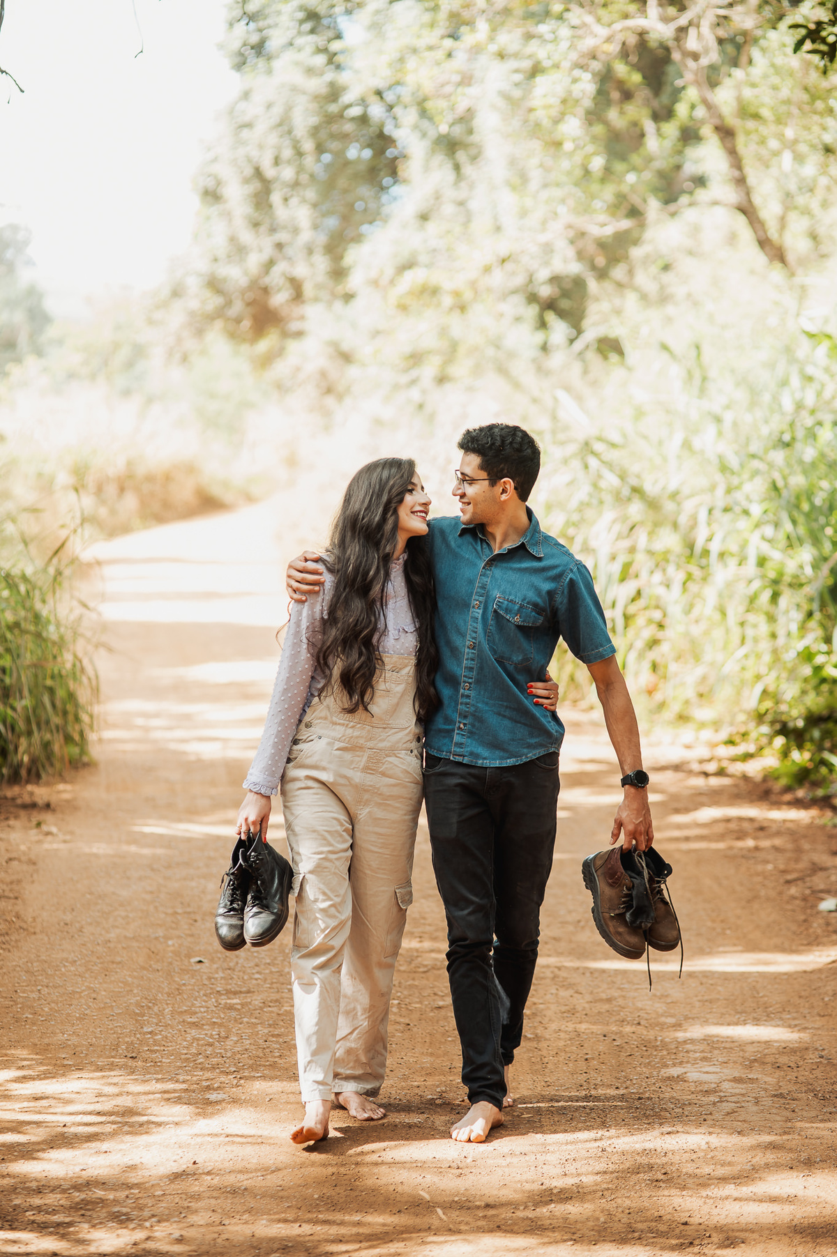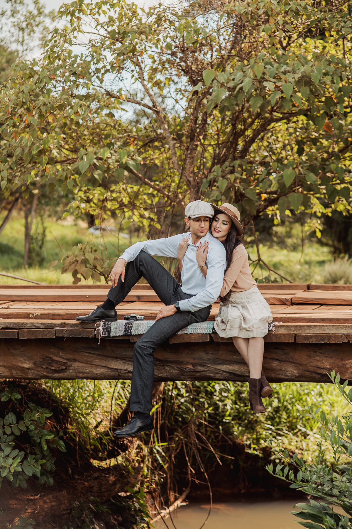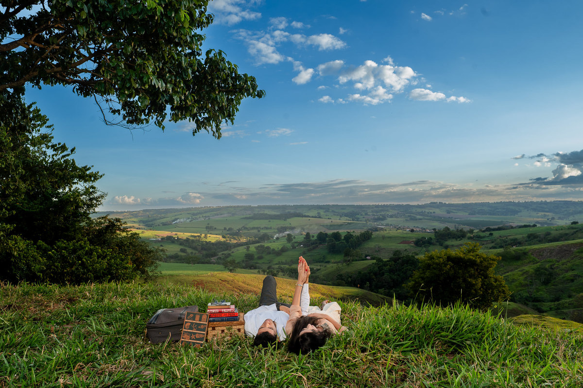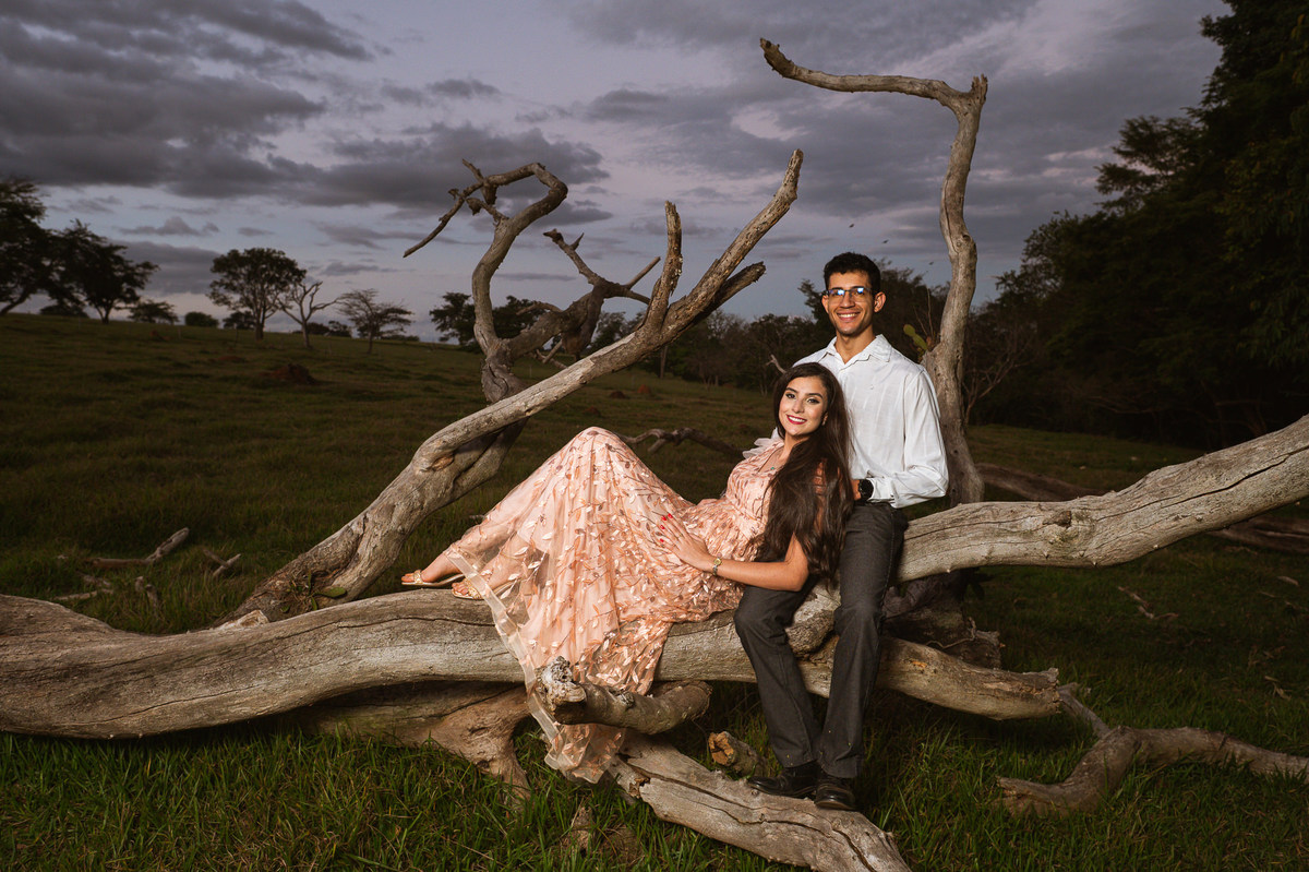 Conversamos muito e chegamos no local onde combinamos anteriormente. Eles tem o costume de passear por esse lugar e queriam que ficasse registrado no seu ensaio. E assim fizemos. O local é bem diferente de tudo que tenho acostumado a fazer. Chegamos em uma grande árvore, e eu pensei comigo: Como será que eles querem essas fotos aqui? Quando eu menos espero, os dois me respondem: Iremos subir lá naquele galho, apontando pra cima. Pensei, o que? Não é possível. Pois vocês verão com seus próprios olhos nas fotos. Eles subiram numa velocidade e destreza que há muitos anos não via.