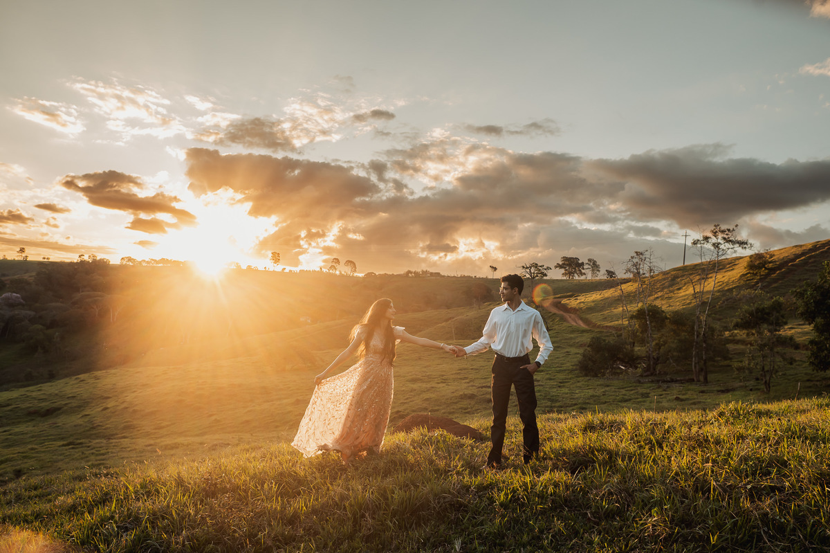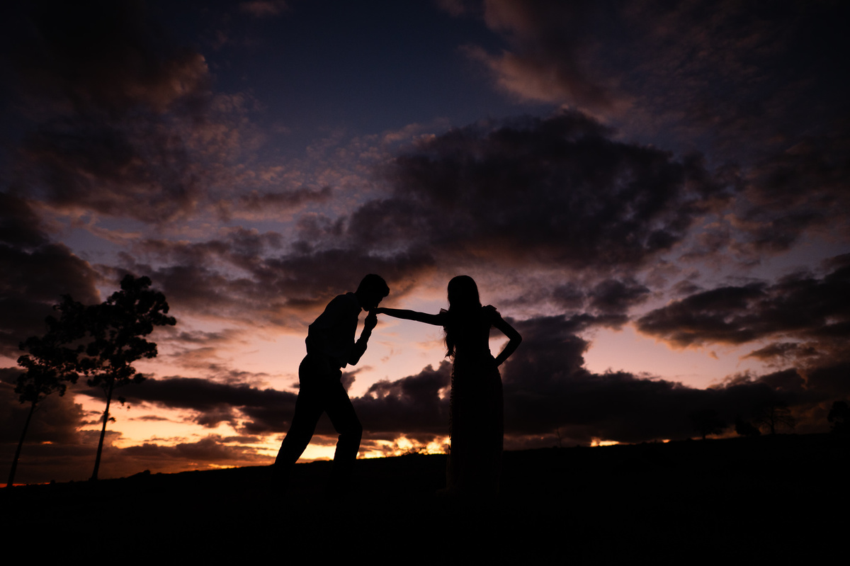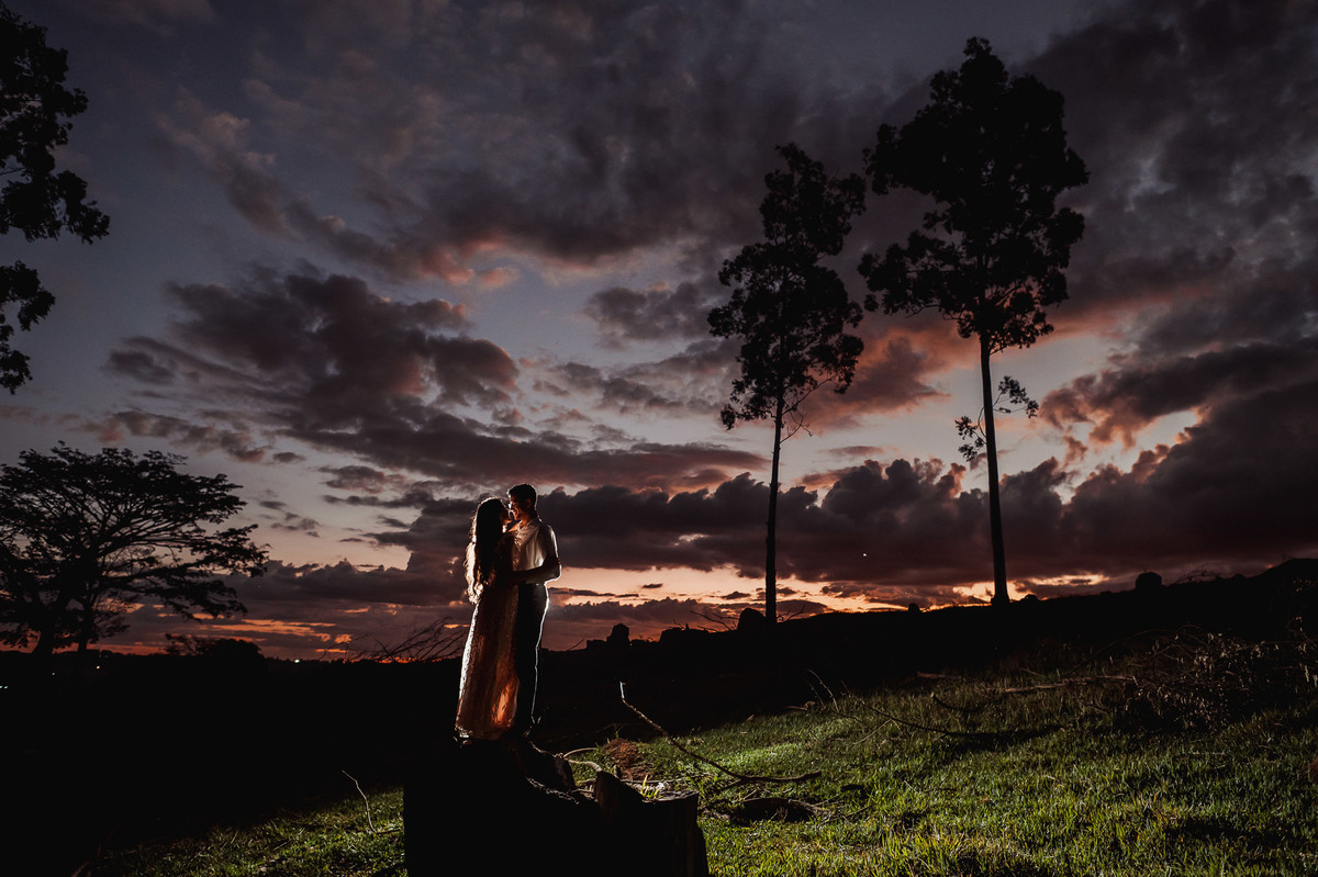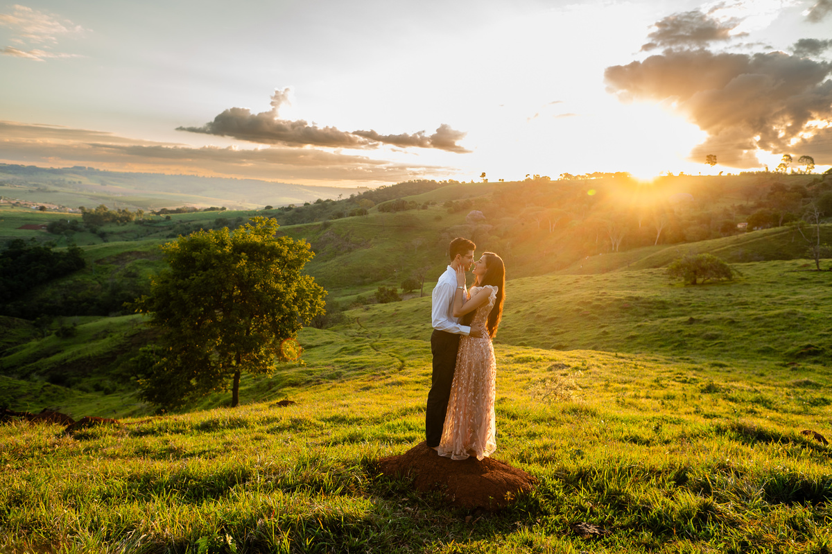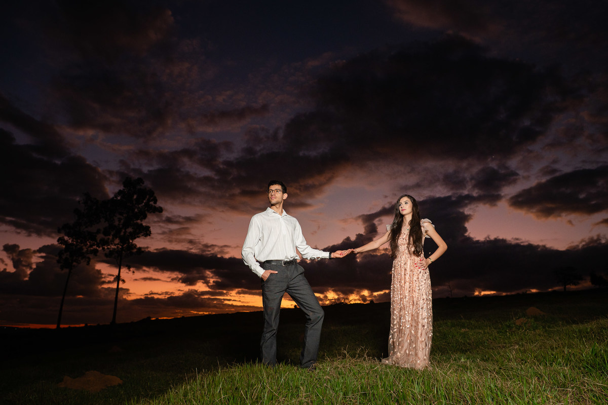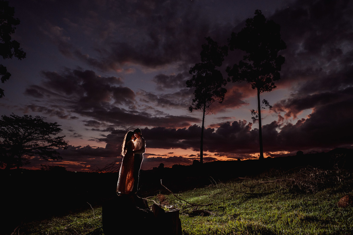 Depois, ainda com o look temporal, passamos por uma ponte e fizemos mais algumas fotos por lá também. Onde olhávamos tinha um lugar legal para fotografar. Para fechar com chave de ouro, deixamos o lugar mais bonito por último, lugar esse onde só os noivos conheciam. Uma verdadeira paisagem de filme. Montamos o cenário e iluminação e fizemos as fotos. Deus nos concedeu um lindíssimo pôr-do-sol para completar o cenário. Ainda mais pra cima, subimos para finalizar o ensaio. E agora, logo abaixo o resultado desse dia incrível de fotos. Espero que goste!
