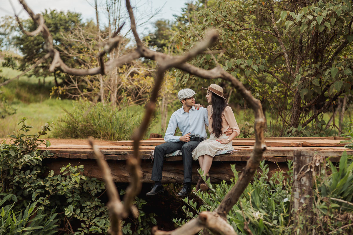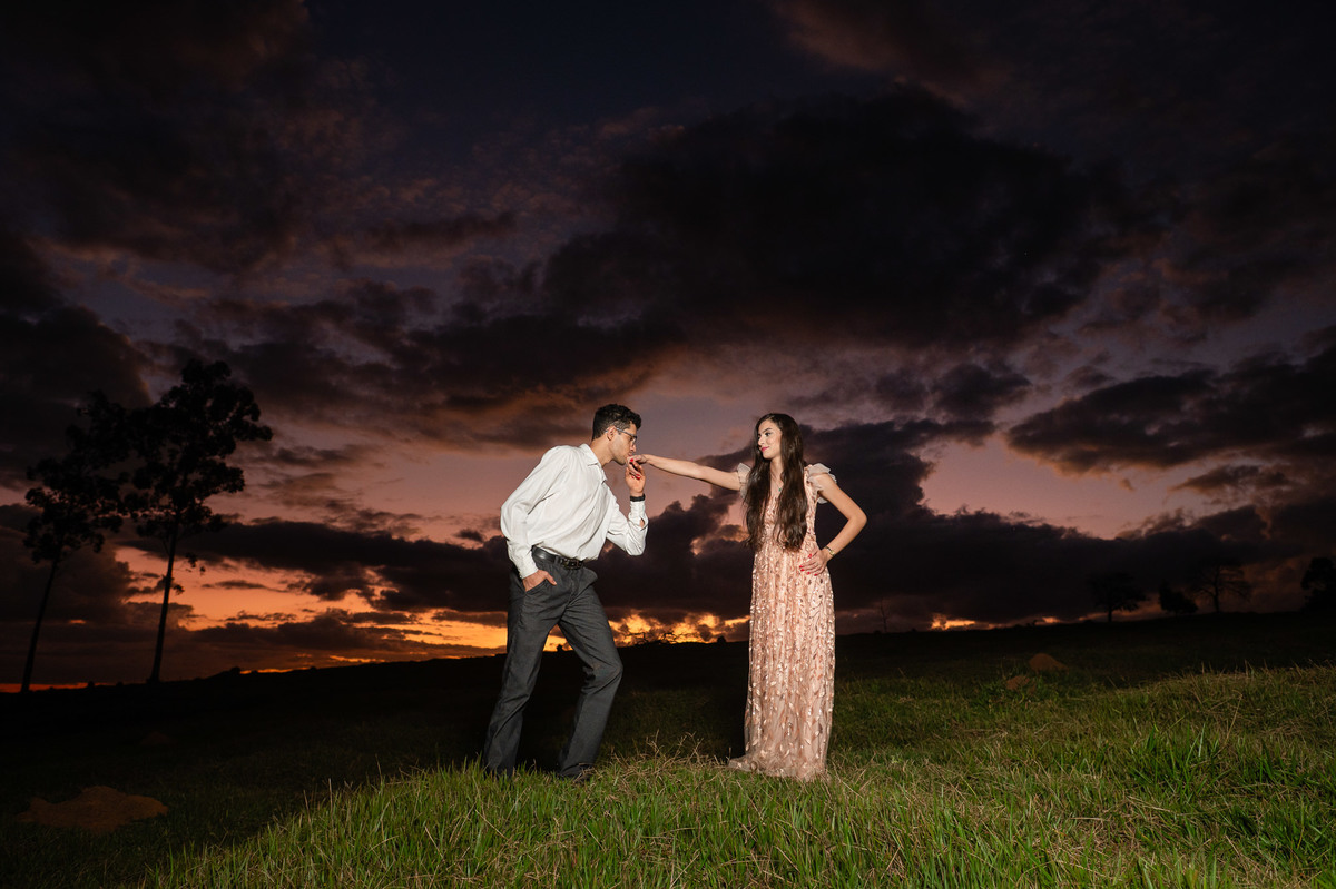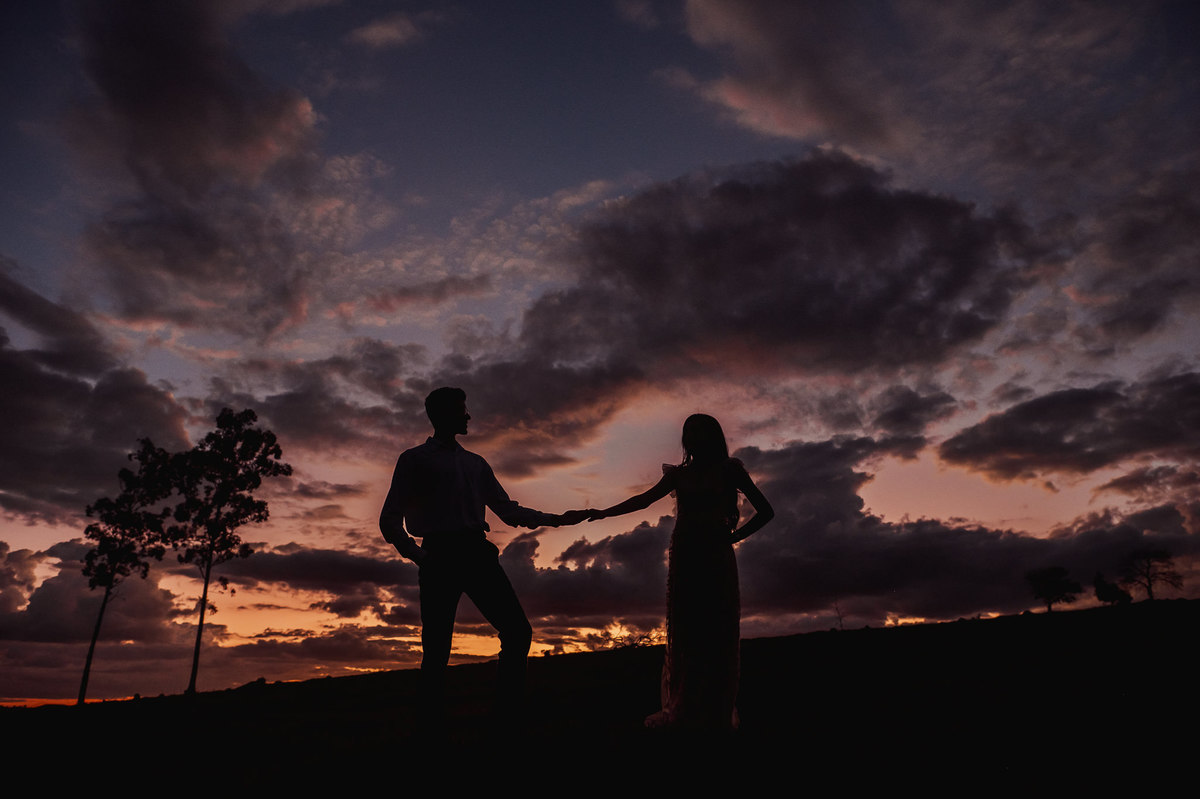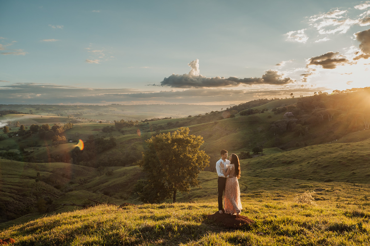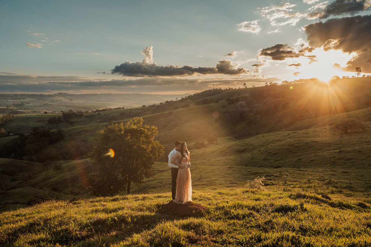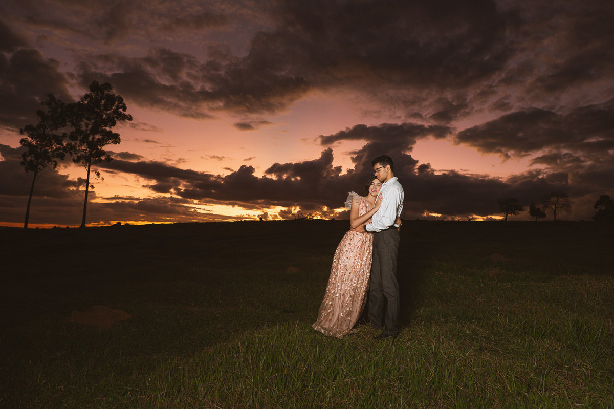 Depois, ainda com o look temporal, passamos por uma ponte e fizemos mais algumas fotos por lá também. Onde olhávamos tinha um lugar legal para fotografar. Para fechar com chave de ouro, deixamos o lugar mais bonito por último, lugar esse onde só os noivos conheciam. Uma verdadeira paisagem de filme. Montamos o cenário e iluminação e fizemos as fotos. Deus nos concedeu um lindíssimo pôr-do-sol para completar o cenário. Ainda mais pra cima, subimos para finalizar o ensaio. E agora, logo abaixo o resultado desse dia incrível de fotos. Espero que goste!