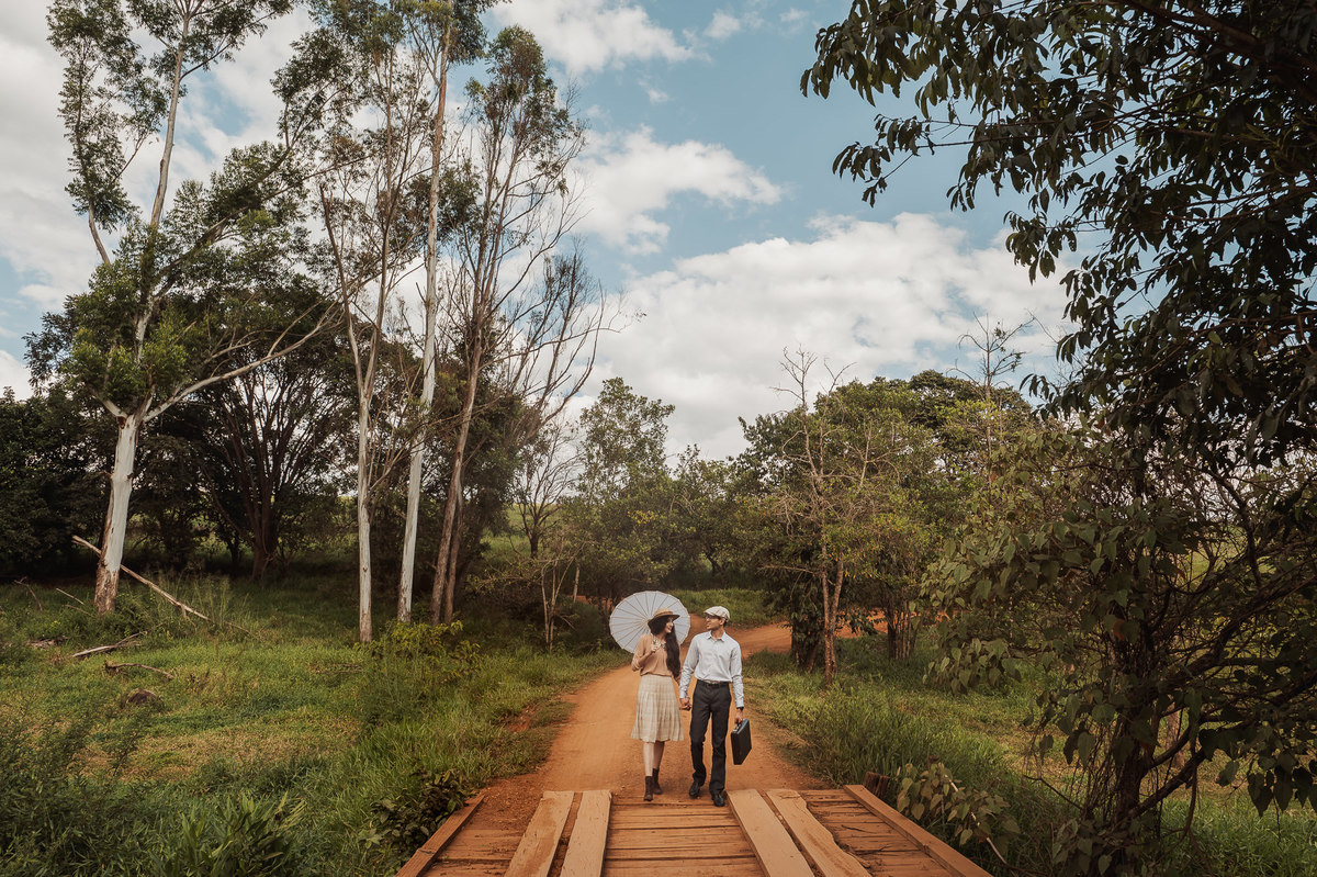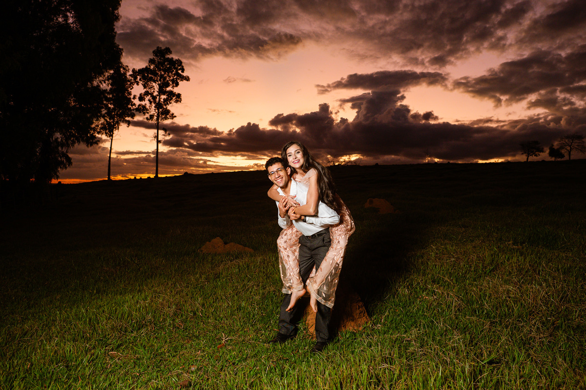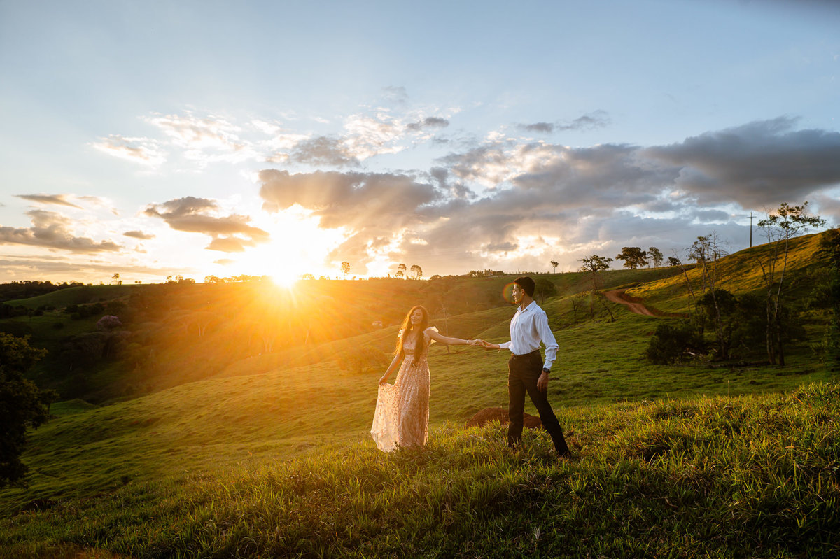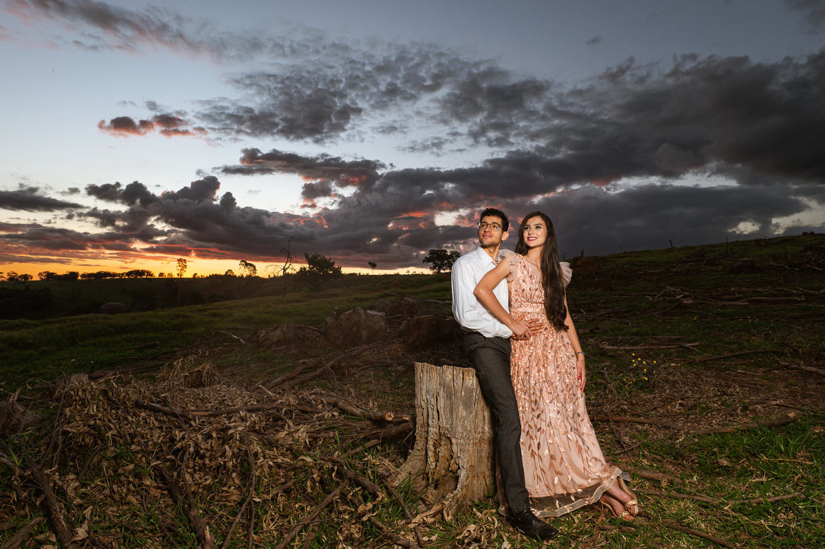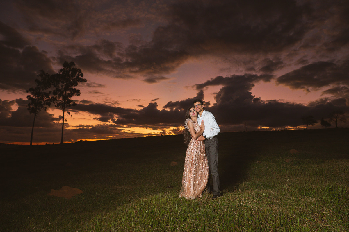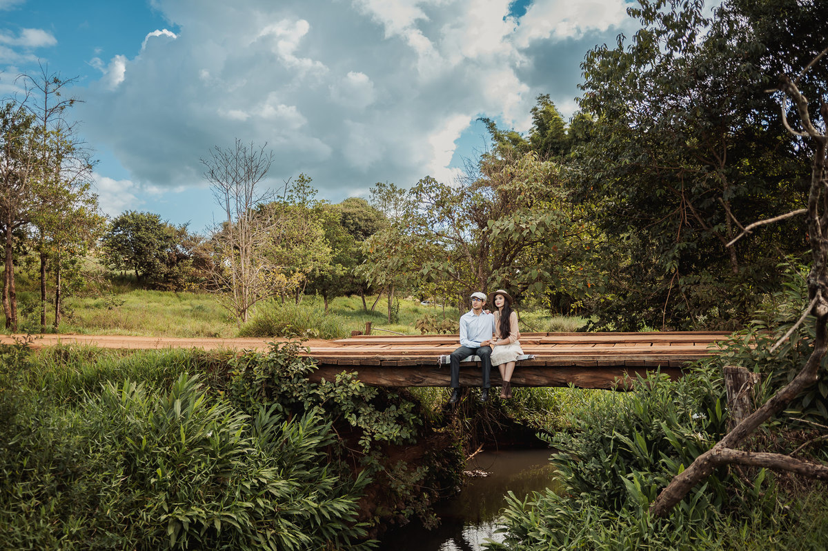 Depois, ainda com o look temporal, passamos por uma ponte e fizemos mais algumas fotos por lá também. Onde olhávamos tinha um lugar legal para fotografar. Para fechar com chave de ouro, deixamos o lugar mais bonito por último, lugar esse onde só os noivos conheciam. Uma verdadeira paisagem de filme. Montamos o cenário e iluminação e fizemos as fotos. Deus nos concedeu um lindíssimo pôr-do-sol para completar o cenário. Ainda mais pra cima, subimos para finalizar o ensaio. E agora, logo abaixo o resultado desse dia incrível de fotos. Espero que goste!