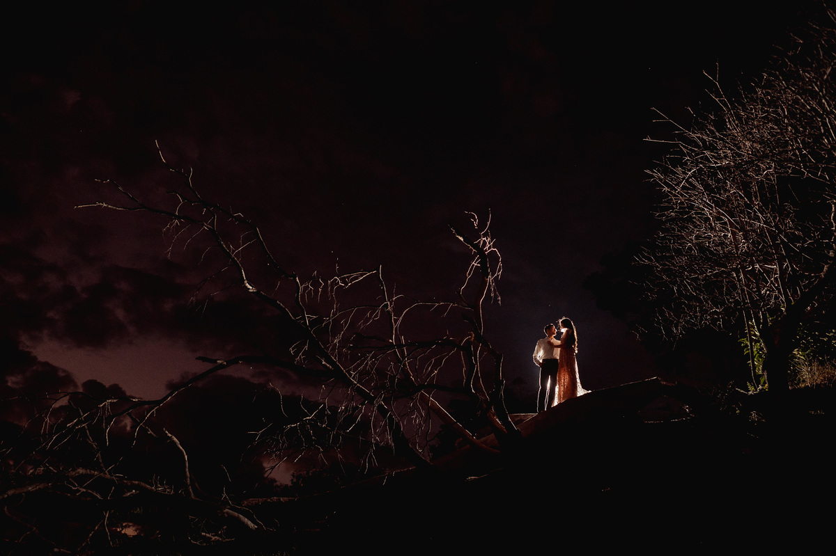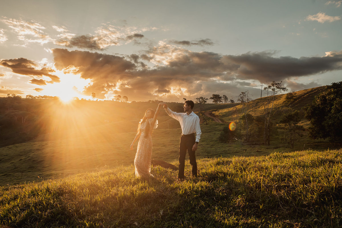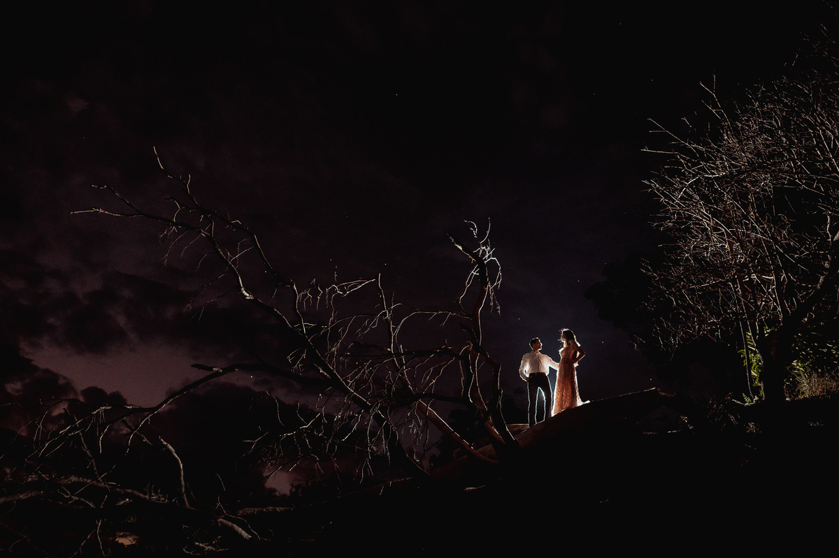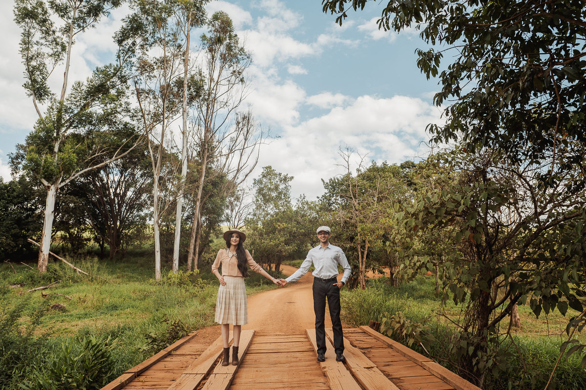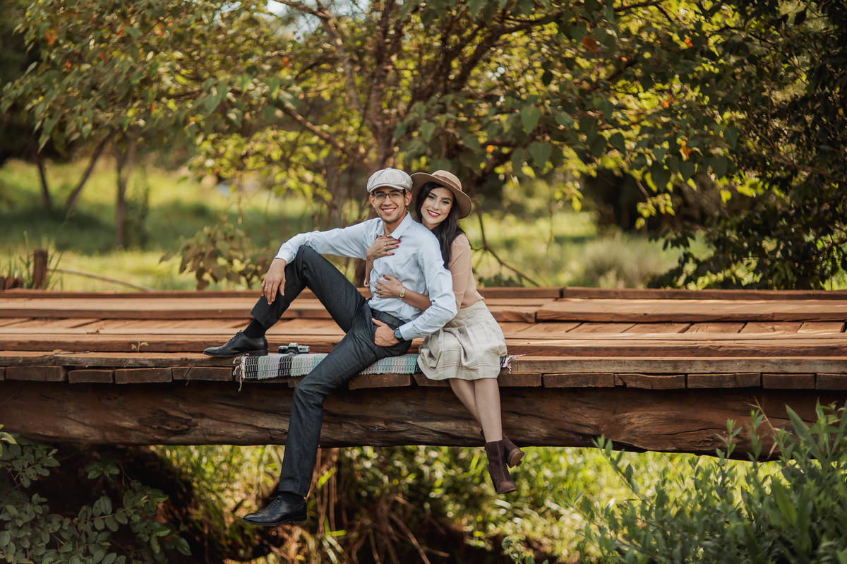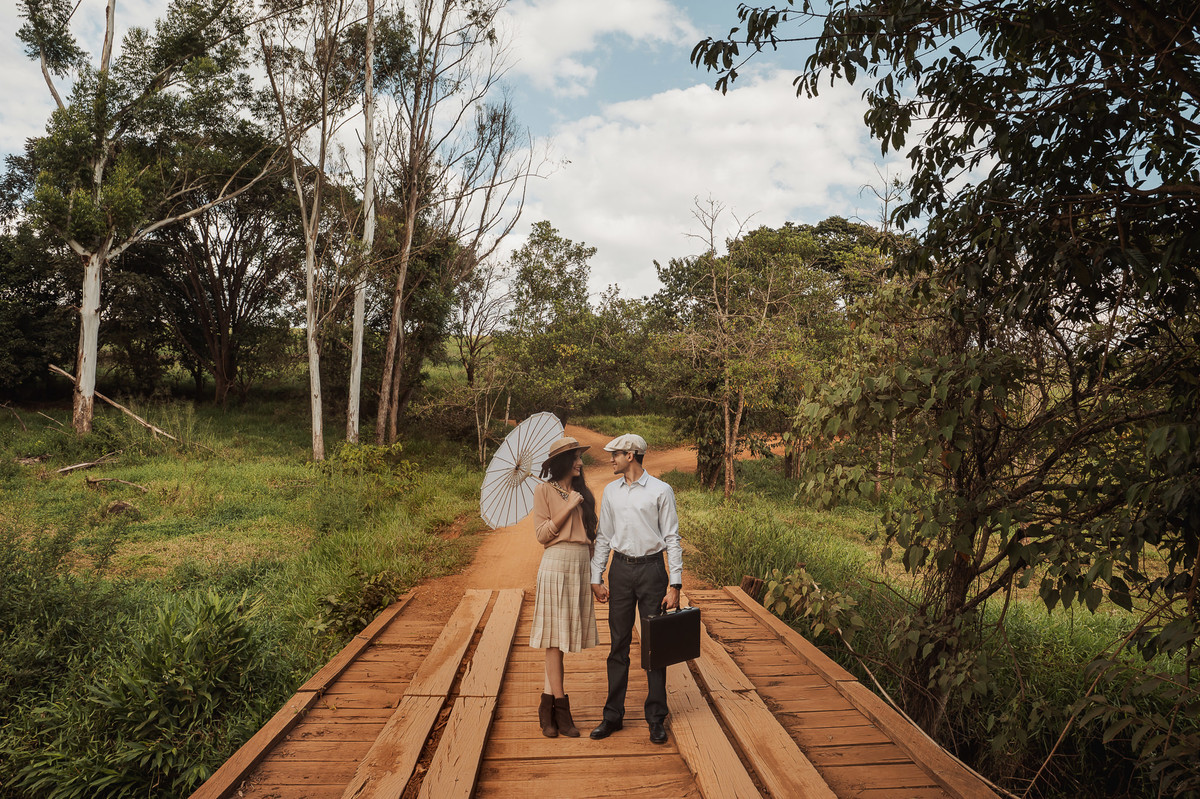 Depois, ainda com o look temporal, passamos por uma ponte e fizemos mais algumas fotos por lá também. Onde olhávamos tinha um lugar legal para fotografar. Para fechar com chave de ouro, deixamos o lugar mais bonito por último, lugar esse onde só os noivos conheciam. Uma verdadeira paisagem de filme. Montamos o cenário e iluminação e fizemos as fotos. Deus nos concedeu um lindíssimo pôr-do-sol para completar o cenário. Ainda mais pra cima, subimos para finalizar o ensaio. E agora, logo abaixo o resultado desse dia incrível de fotos. Espero que goste!
