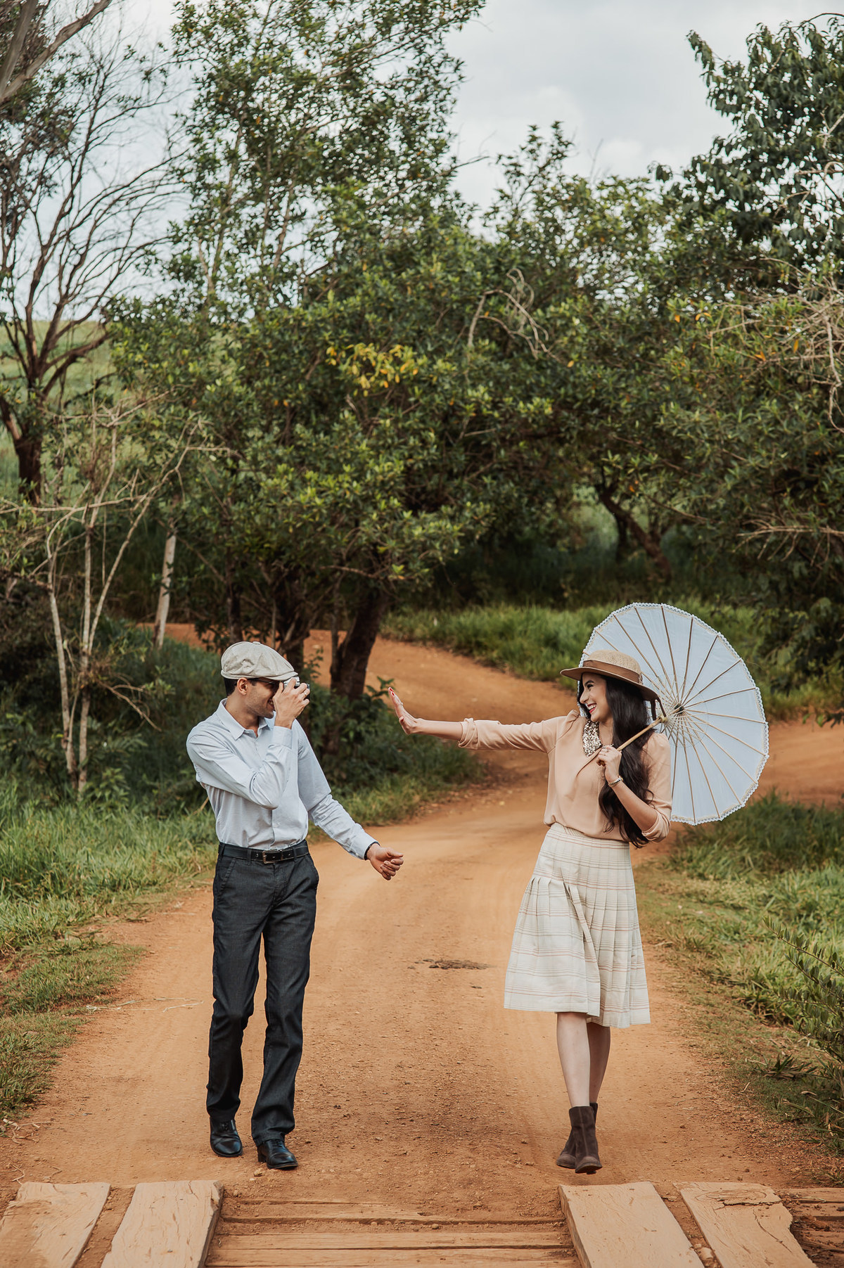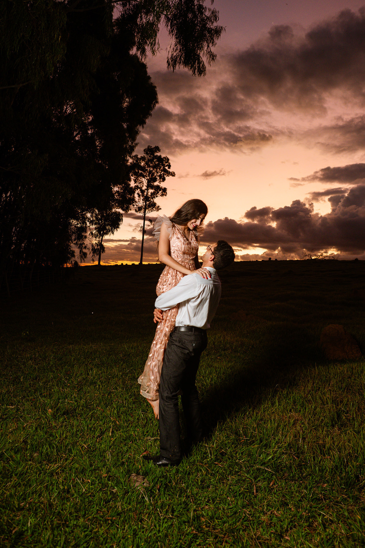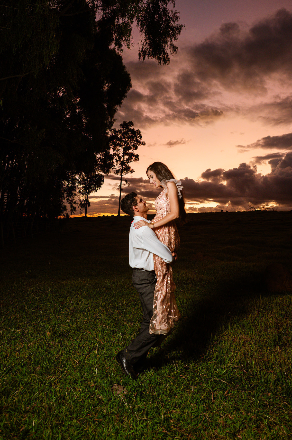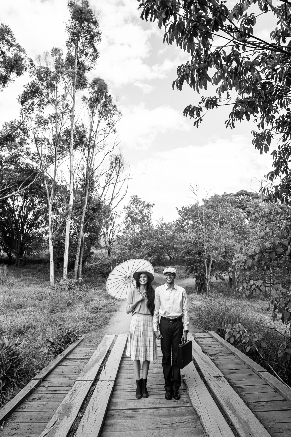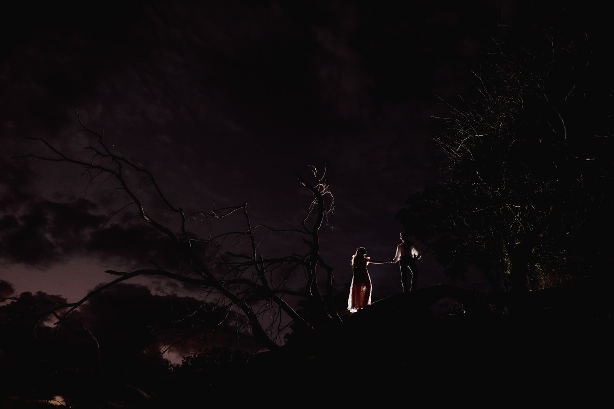 Depois, ainda com o look temporal, passamos por uma ponte e fizemos mais algumas fotos por lá também. Onde olhávamos tinha um lugar legal para fotografar. Para fechar com chave de ouro, deixamos o lugar mais bonito por último, lugar esse onde só os noivos conheciam. Uma verdadeira paisagem de filme. Montamos o cenário e iluminação e fizemos as fotos. Deus nos concedeu um lindíssimo pôr-do-sol para completar o cenário. Ainda mais pra cima, subimos para finalizar o ensaio. E agora, logo abaixo o resultado desse dia incrível de fotos. Espero que goste!