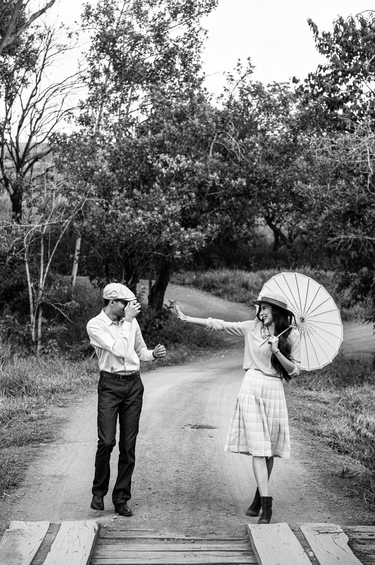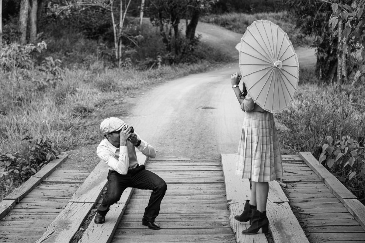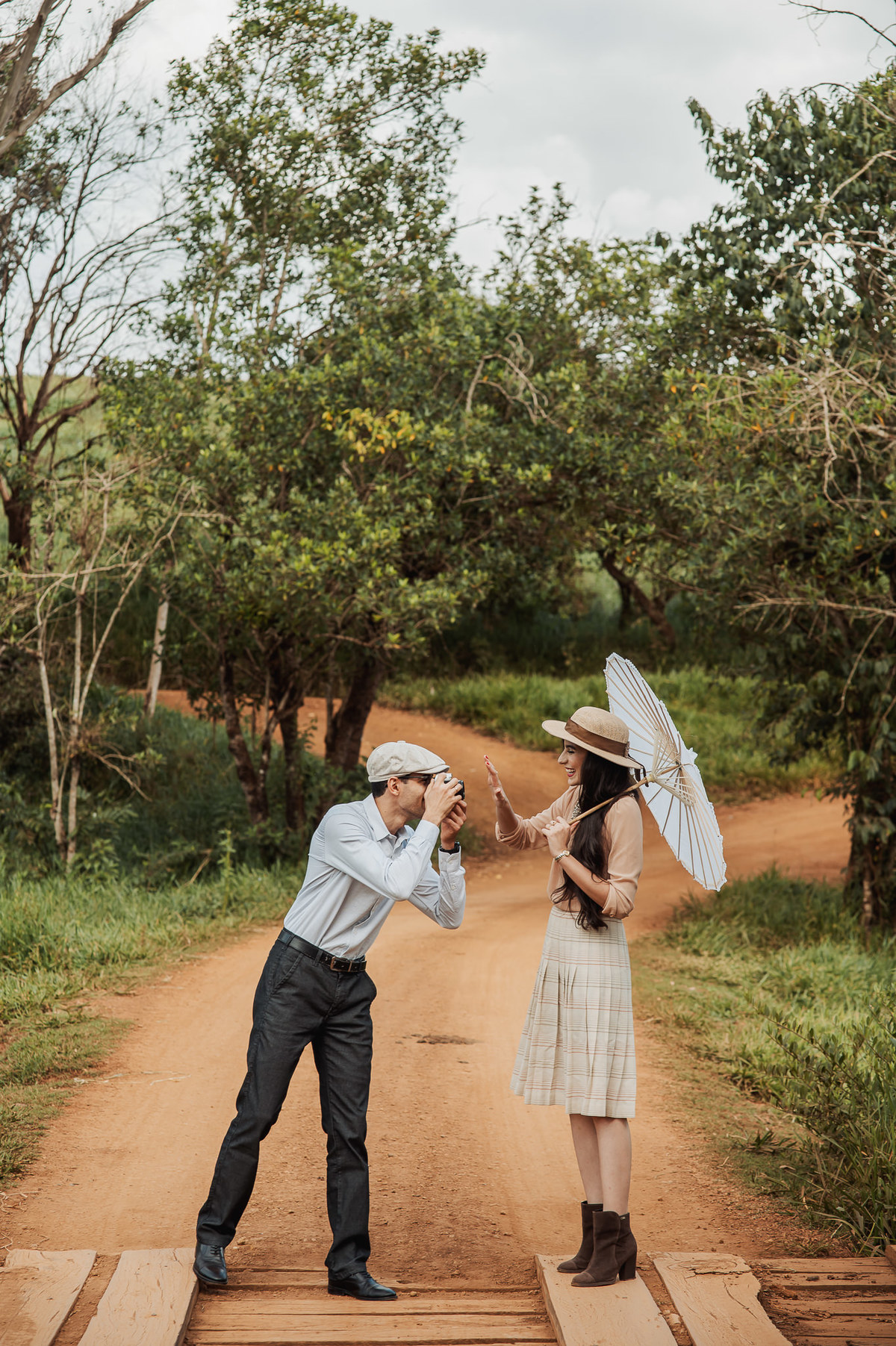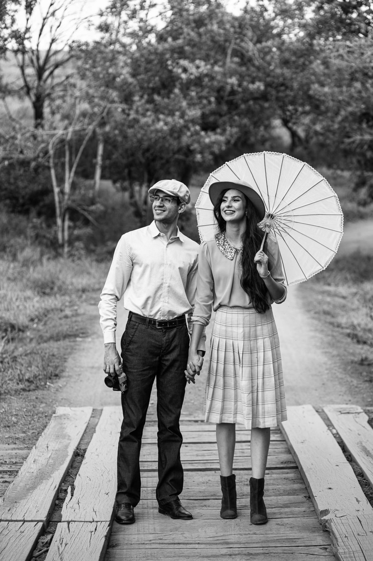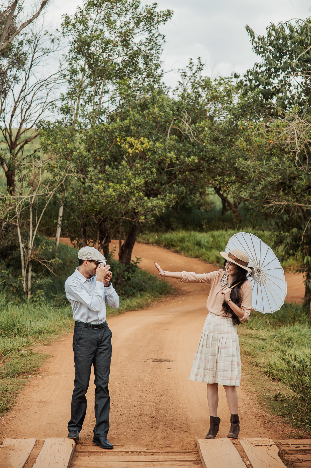 Depois, ainda com o look temporal, passamos por uma ponte e fizemos mais algumas fotos por lá também. Onde olhávamos tinha um lugar legal para fotografar. Para fechar com chave de ouro, deixamos o lugar mais bonito por último, lugar esse onde só os noivos conheciam. Uma verdadeira paisagem de filme. Montamos o cenário e iluminação e fizemos as fotos. Deus nos concedeu um lindíssimo pôr-do-sol para completar o cenário. Ainda mais pra cima, subimos para finalizar o ensaio. E agora, logo abaixo o resultado desse dia incrível de fotos. Espero que goste!