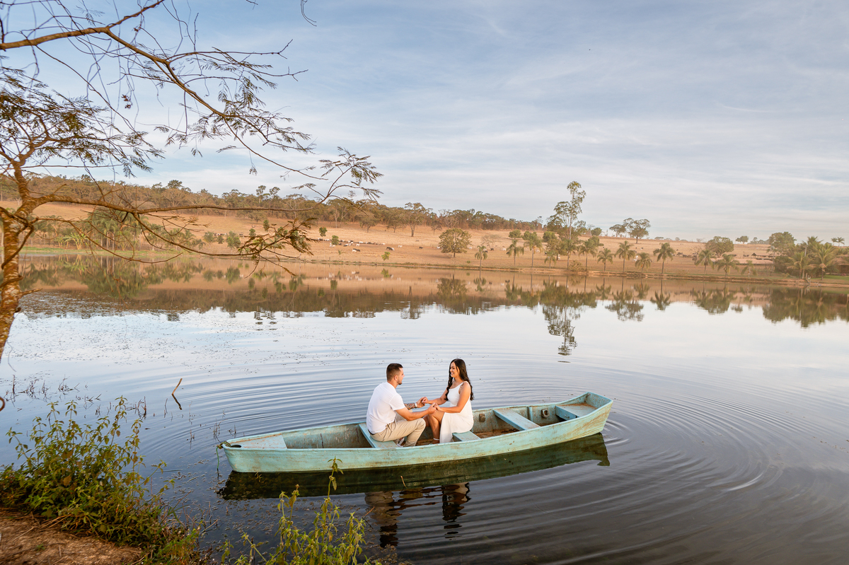 Percorremos vários lugares e aos poucos eles foram se soltando e sorrindo cada vez mais. Bianca e Leonardo confiaram em nosso trabalho desde muito tempo. Fizemos também o casamento do irmão do noivo há alguns anos atrás, onde eles também estavam presentes. Bianca comentou comigo que gostaria muito de fazer a foto no barquinho, apesar de ter muito medo de cair na água. Prontamente os atendi, auxiliando o casal a se posicionar no meio do lago. Fizemos vários takes lindos com as fotos. Depois, aproveitamos ainda mais a lagoa e toda a beleza que o dia nos proporcionou.