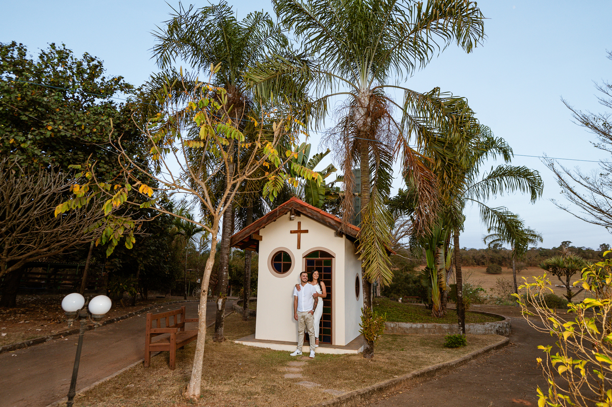 Por todos os lados, as flores embelezavam a paisagem e me chamaram a atenção. Posicionando o casal em meio à elas, contrastando com a vestimenta branca. Proporcionou uma imagem muito agradável. Finalizamos com a charmosa capelinha que há no local. Ainda aproveitamos também o pôr-do-sol que já brilhava no céu. Agora, abaixo você confere um breve resumo do que foi esse ensaio maravilhoso. Obrigado por ver!