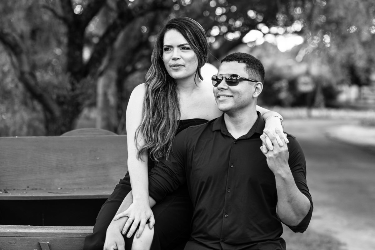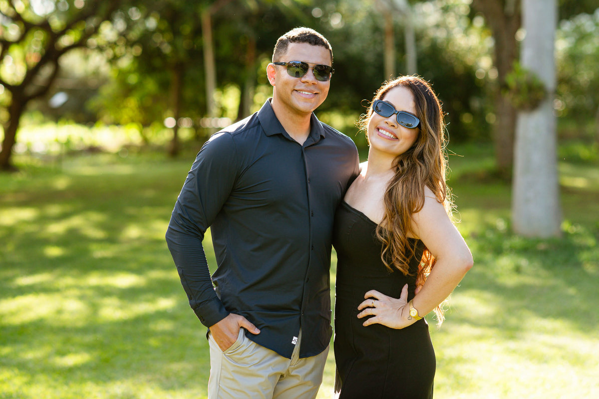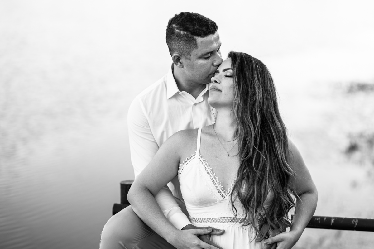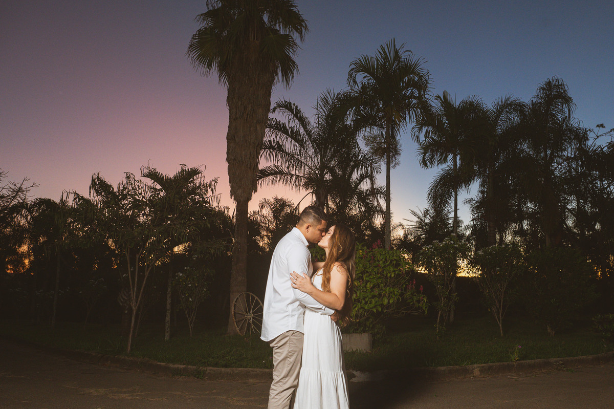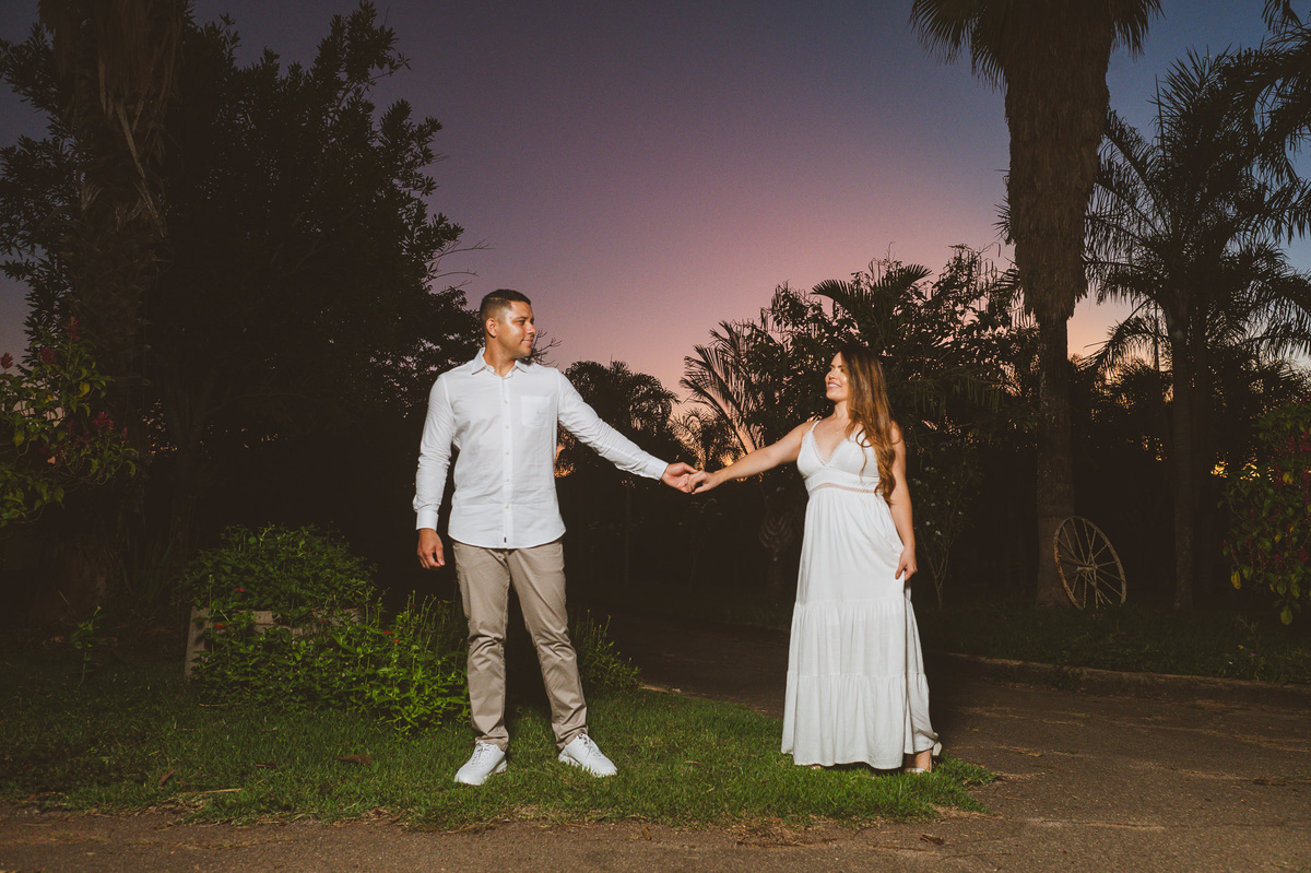 Depois desse susto, os sorrisos ficaram ainda mais soltos. Percorremos a piscina, usando o reflexo que nela existia. A cor amarela de uma parede do local sempre me chama atenção. Fizemos mais alguns cliques por lá e a tarde foi se encerrando. O pôr do sol estava daquele jeito, hipnotizante. Posicionamos o casal de forma com que conseguíssemos captar os dois e o entardecer. E pronto. Encerramos o ensaio com essa visão maravilhosa, abençoados por Deus por nos permitir mais um dia incrível de fotos. Agora, logo abaixo vocês conferem o resultado de tudo que foi dito aqui.