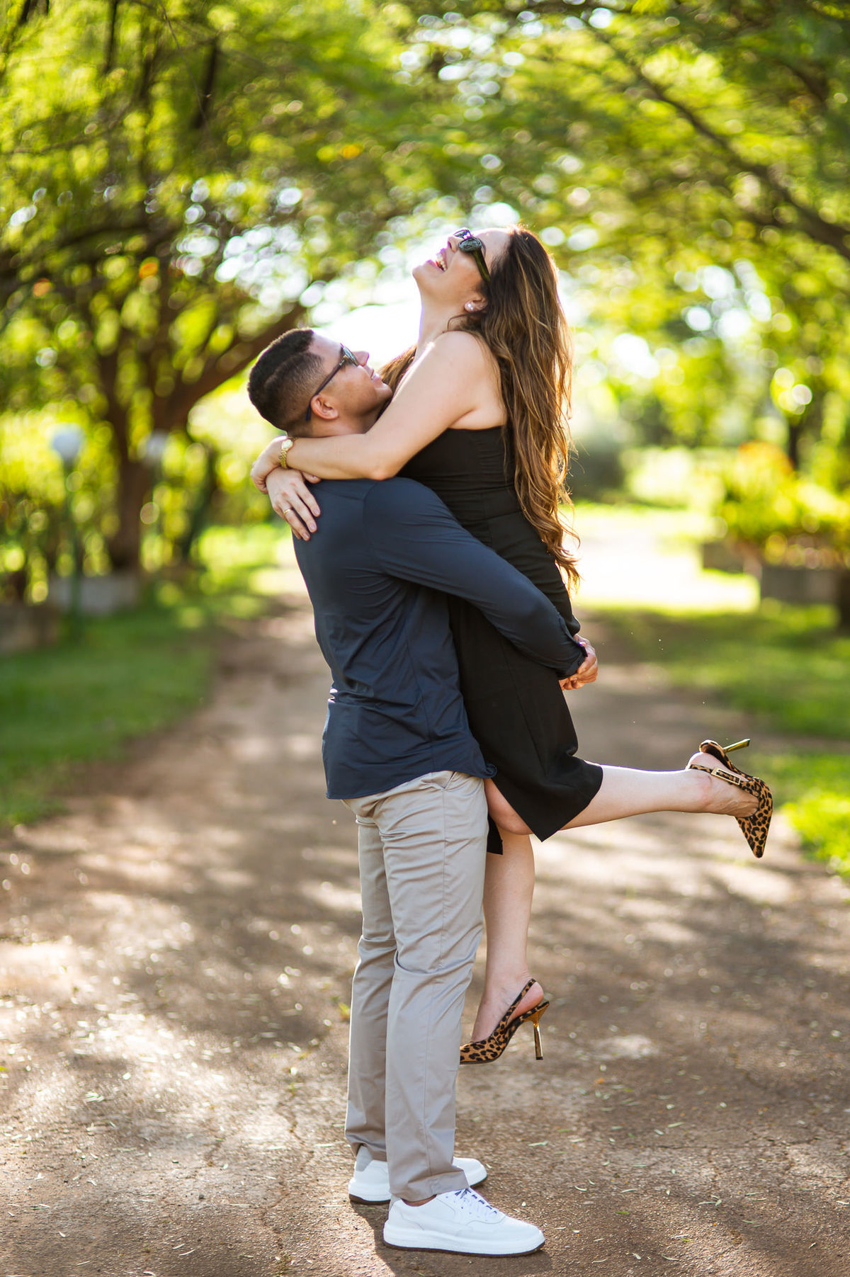 Hoje, postamos aqui um ensaio muito divertido. Thaís e Daniel marcaram e remarcaram esse ensaio por nossa culpa. No final, foi uma providência de Deus que essa data tenha sido remarcada. Tudo conspirou para que mudássemos e remarcássemos esse dia para que fosse ainda melhor e mais gostoso de se fazer. Eles escolheram o tradicional Cantinho da Natureza que por si só já é lindo. Percorremos todos os cantos do local, começando pelo gramado espetacular. O sol já nos presenteava com uma tarde belíssima.