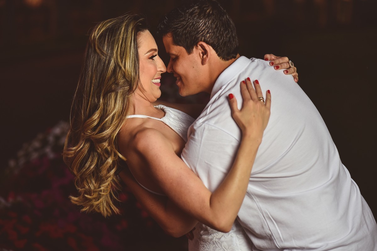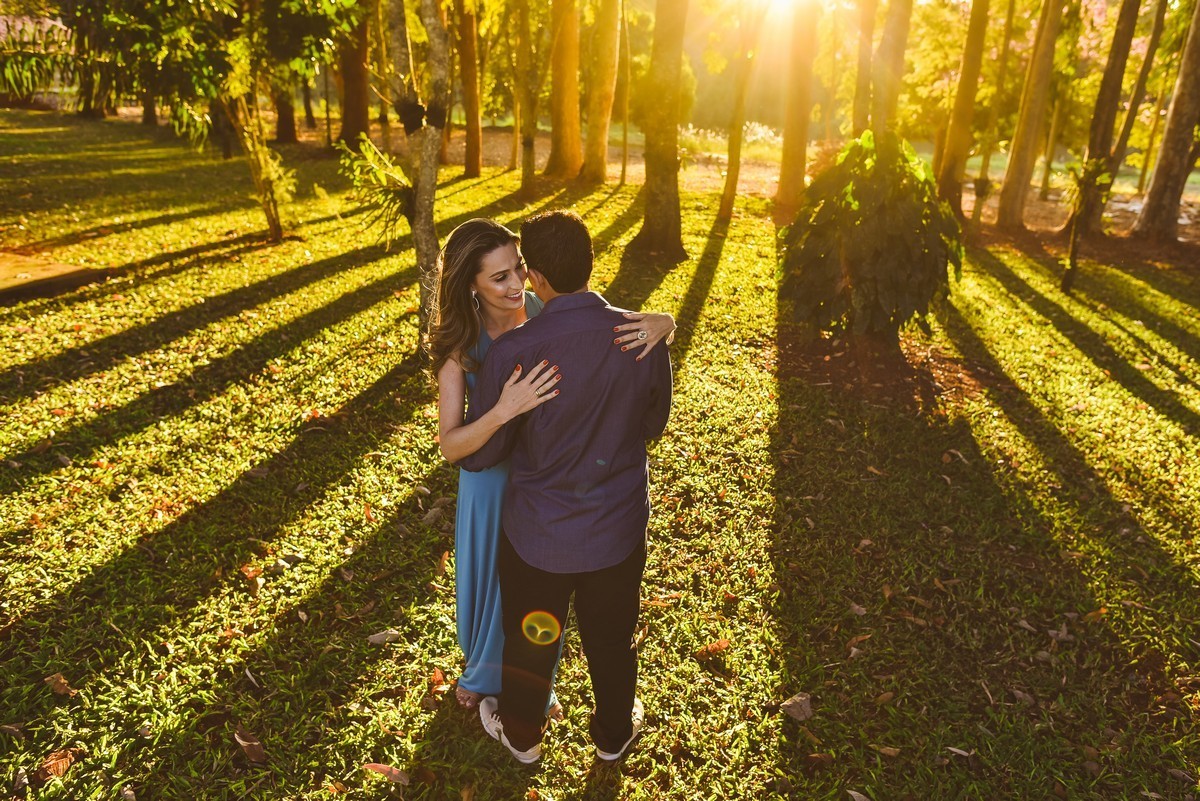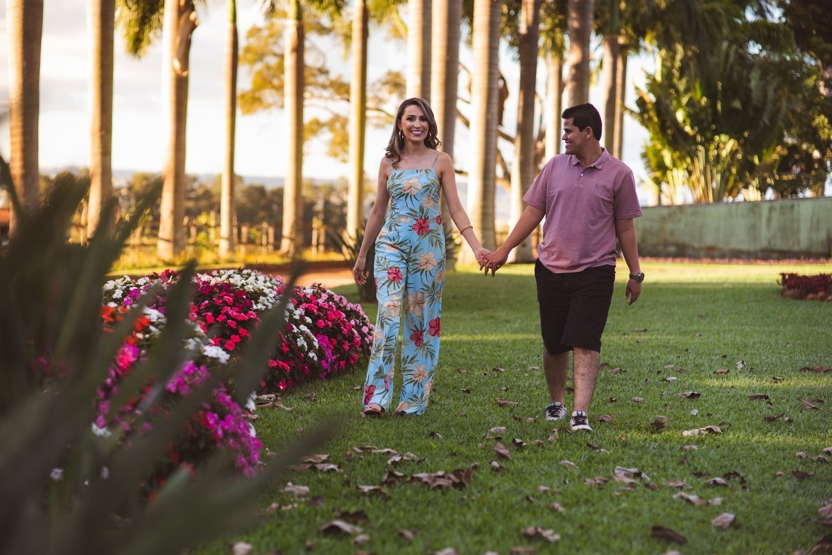 FOi uma tarde linda. O sol já baixo, emoldurava o casal. Eles passeavam pelo jardim muito bem conservado e bonito e entrelaçavam junto com a beleza do campo com a beleza do amor dos dois. Fizemos muitas fotos em todo o entorno do local e a cada novo clique, um sorriso mais bonito! O amor estava sendo cultivado no coração desses dois queridos. Os olhinhos dos dois quando se cruzavam pareciam brilhar ainda mais forte.
