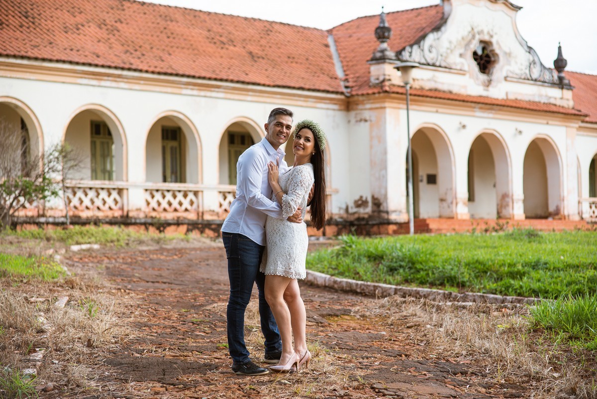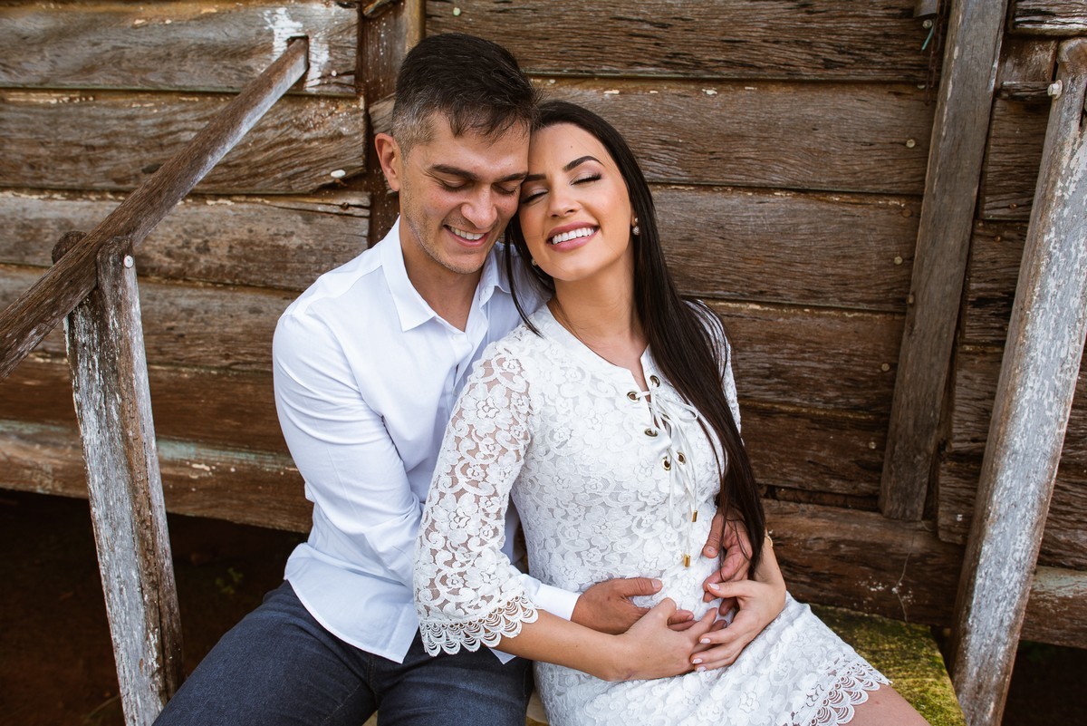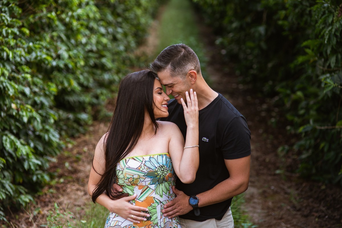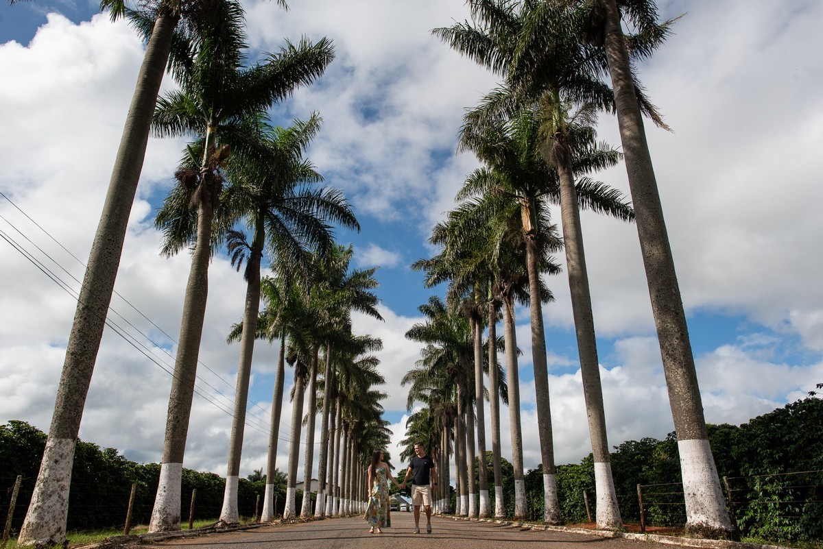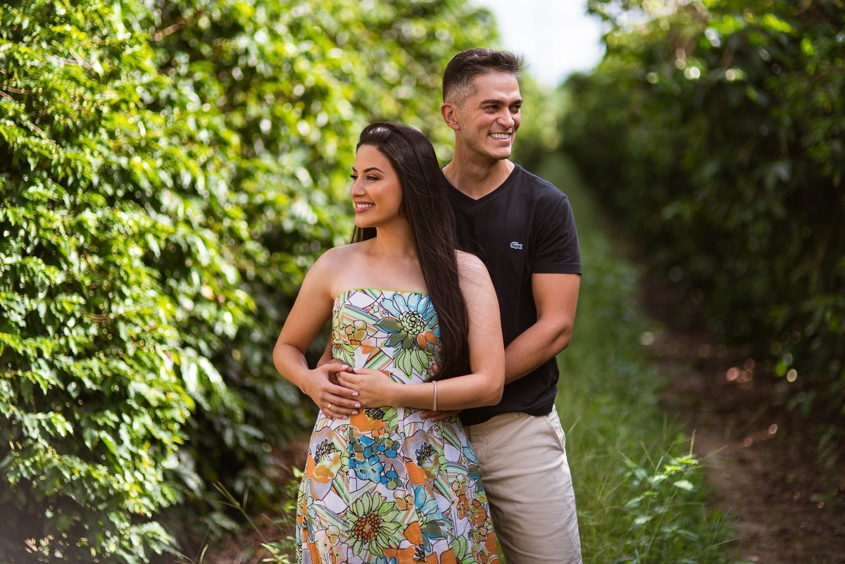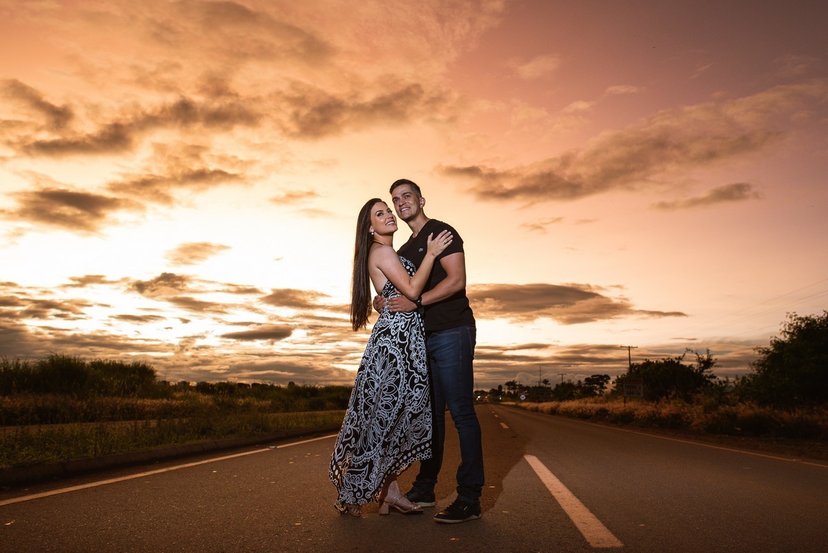 A cada local que passamos fizemos alguns cliques. Não era necessário muito. Uma estrada vazia, alguns coqueiros enfileirados, uns pés de café... Era o suficiente para emoldurar o amor dos dois. Visitamos também o conhecido Sertãozinho, local bem pertinho aqui da cidade e que tem alguns locais bem charmosos. Encontramos uma árvore com flores amarelas que chamaram a atenção. Posicionando os dois por lá e pronto, a foto estava lá prontinha. Encontramos um caminhão velho (Que por sinal foi o mesmo que o meu fotógrafo usou nas minhas fotos de noivo 10 anos atrás!). Estava lá escondidinho atrás de um casarão. Deus preparou uma luz toda especial para brilhar exatamente naquele lugar, naquela hora. Ficou sensacional!