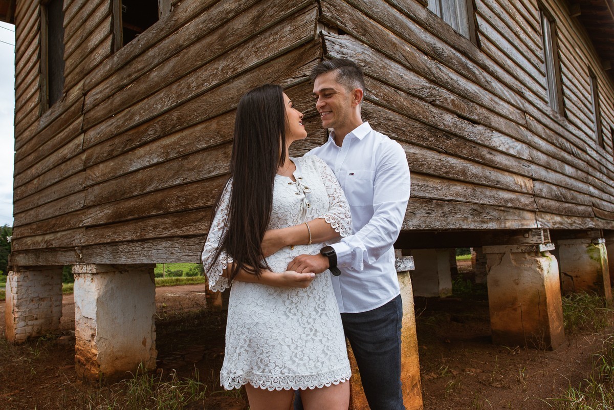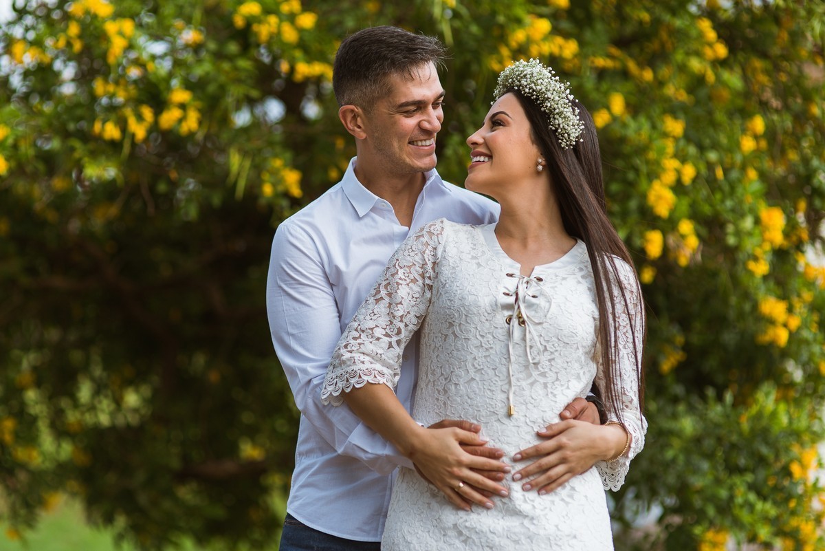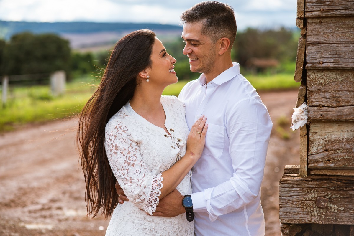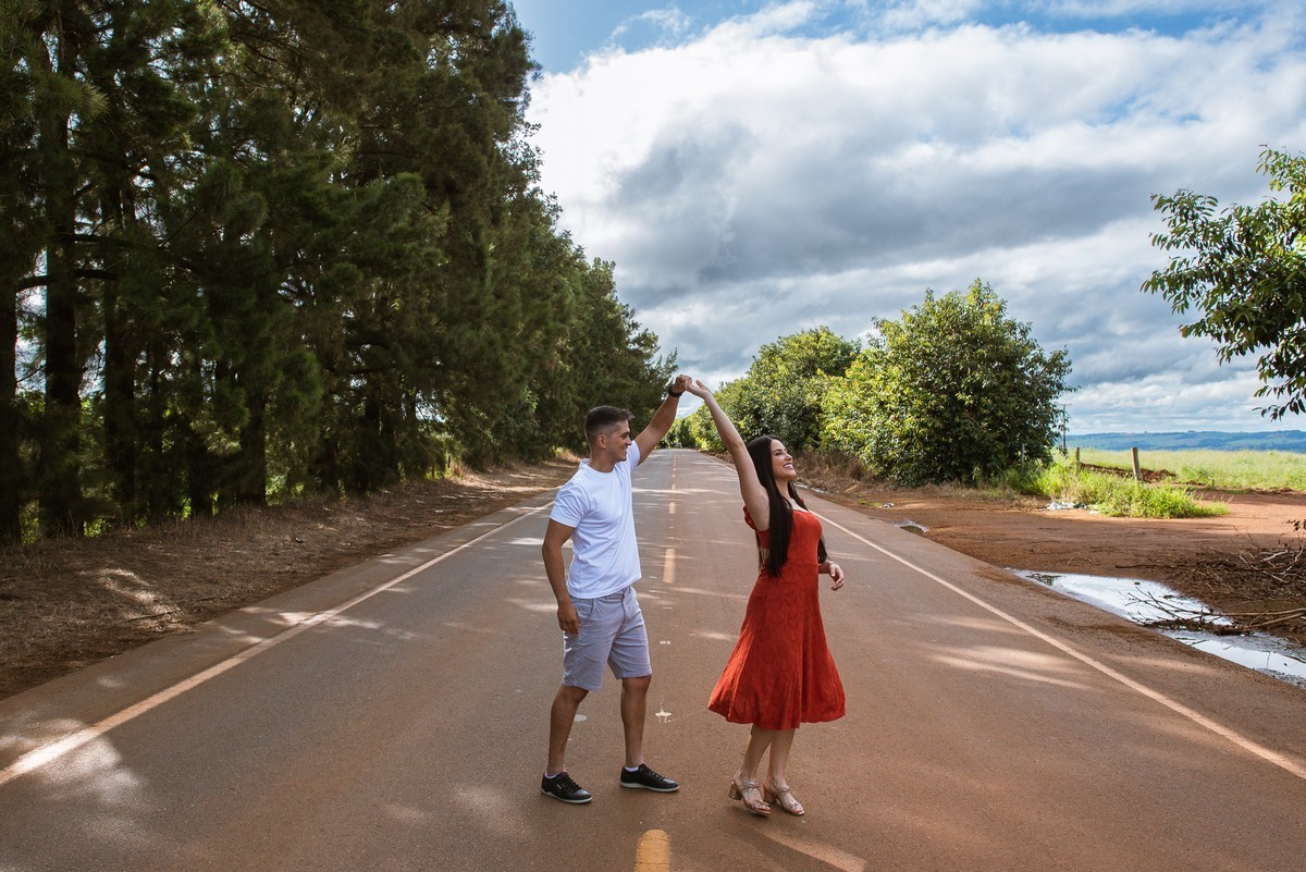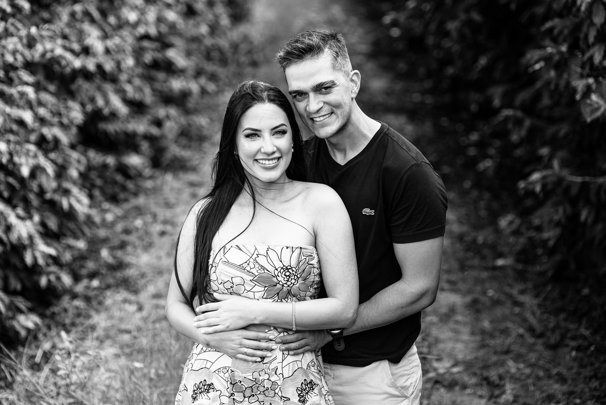 A cada local que passamos fizemos alguns cliques. Não era necessário muito. Uma estrada vazia, alguns coqueiros enfileirados, uns pés de café... Era o suficiente para emoldurar o amor dos dois. Visitamos também o conhecido Sertãozinho, local bem pertinho aqui da cidade e que tem alguns locais bem charmosos. Encontramos uma árvore com flores amarelas que chamaram a atenção. Posicionando os dois por lá e pronto, a foto estava lá prontinha. Encontramos um caminhão velho (Que por sinal foi o mesmo que o meu fotógrafo usou nas minhas fotos de noivo 10 anos atrás!). Estava lá escondidinho atrás de um casarão. Deus preparou uma luz toda especial para brilhar exatamente naquele lugar, naquela hora. Ficou sensacional!