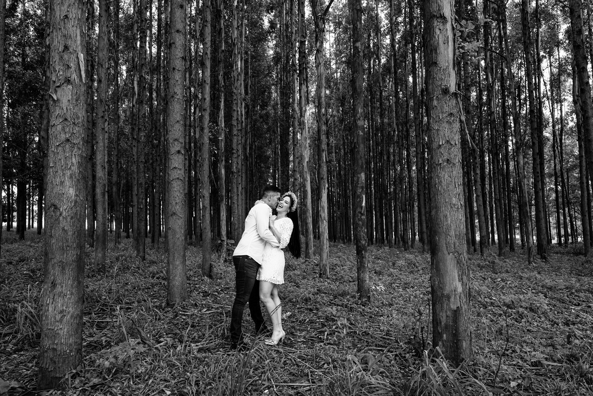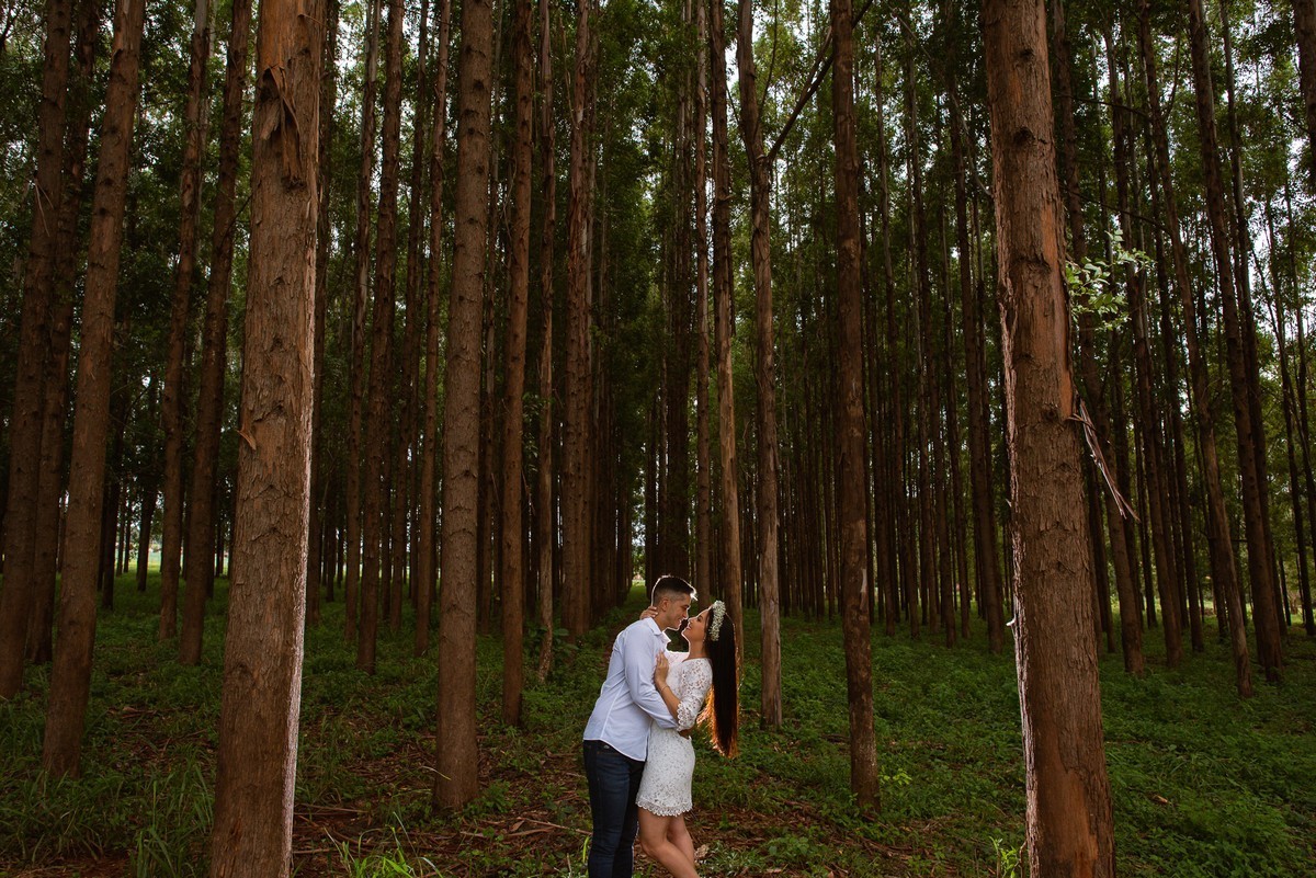 Passamos também pelos famosos eucaliptos que por si só são magníficos. E partimos de volta pra cidade. O ensaio estava praticamente finalizado, mas resolvemos fazer mais algumas fotos com um look que a noiva havia levado. O céu estava normal, aliás, marcando chuva o dia todo. No finalzinho do ensaio, pouco antes de escurecer, eis que milagrosamente nos aparece um belíssimo pôr-do-sol pra fechar com chave de ouro esse momento.