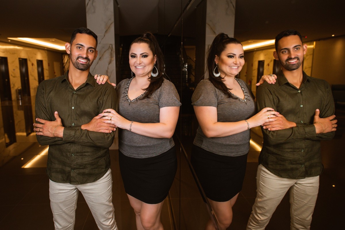 Mas não se engane! É cinco minutinhos de prosa e você vira amigão dele. Bastou conversar um pouco pra notar o grande homem que Daniel é. Durante o ensaio, em todo momento ambos estiveram muito sorridentes. A felicidade estava refletida nos rostos dos dois e também em todas suas ações. O sorriso fácil foi vindo e deixando o ensaio cada vez mais leve, e engraçado, claro.
