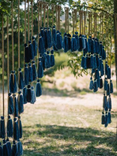 Em vez de apenas um arco de flores no altar, considere um em que os convidados devem passar por baixo para entrar no espaço da cerimônia. Na decoração, pode-se usar móveis antigos ou dar toques finais com almofadas e mantas para adicionar ainda mais texturas no espaço.