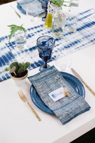 Esse azul clássico parece especialmente adequada para o momento que vivemos; ele não tem gênero nem estação definidos, tornando-o acessível e desejável para as pessoas em todas as esferas da vida. O mais importante é que o tom de índigo pode ser conseguido naturalmente a partir de plantas e corantes, tornando-a uma cor que se alinha bem ao movimento de sustentabilidade, e se encaixa perfeitamente com os ecoweddings que vamos falar agora.