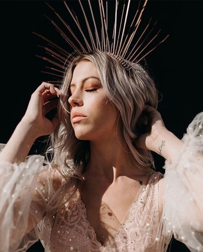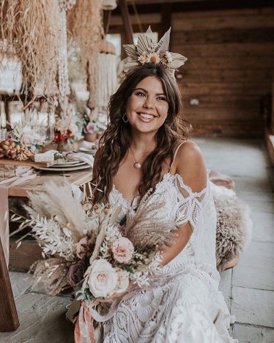 Estamos vendo coroas com materiais exclusivos que proporcionam uma aparência super moderna, romântica e única. Surgiu também um subconjunto das coroas, os halos, que estão cada vez mais populares.