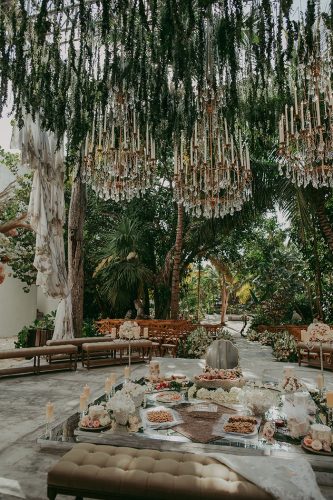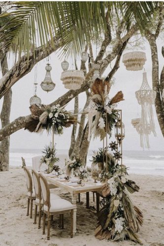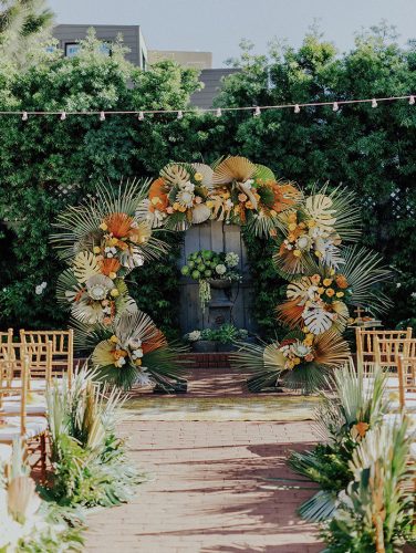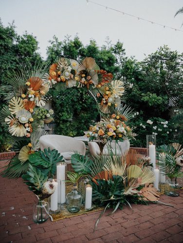 A opulência tropical é o tropicalismo com toques luxuosos. Enquanto a sensação orgânica e natural dos casamentos tropicais boho nunca sairão de moda, a opulência tropical dá um passo para frente com detalhes metálicos, flores exuberantes e texturas luxuosas. Dá só uma olhadinha no destination wedding da Amanda e do Scott!