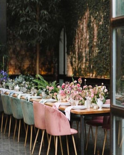 Depois de decidir o tipo e estilo do seu dia mágico e o tema dele, é hora de pensar na paleta de cores. Além do Classic Blue e as misturas de azul que vem com ele, cor é uma das nossas tendências favoritas de casamento em 2020. Espere ver muitos tons quentes- da terracota ao laranja queimado-, verde menta; cassis (não muito rosa nem muito roxo); amarelos e tons pastel que nunca saem de moda para dar um ar de muito romantismo na cerimônia.
