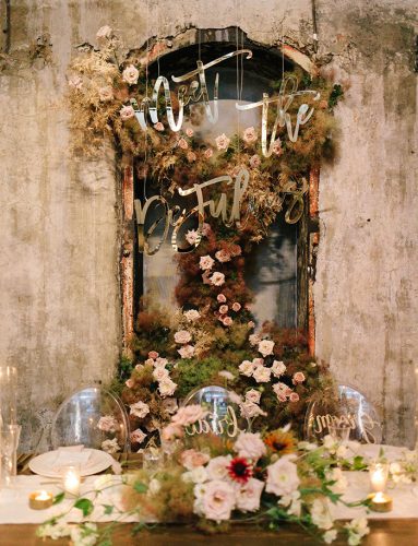 Casamentos com uma vibe vintage ainda são um sucesso. Além dos anos 50 e 60, as cores e a psicodelia dos anos 70 entram em cena, cortesia dos casamentos boho e folk que tanto amamos. Além das paletas de cor retrô, os noivos combinam decoração vintage – notaram como o acrílico voltou com tudo?- e country.