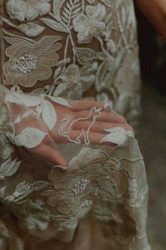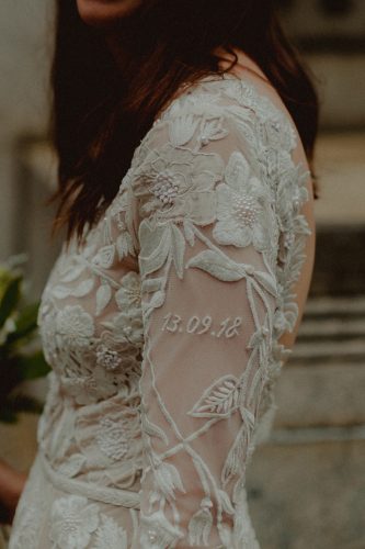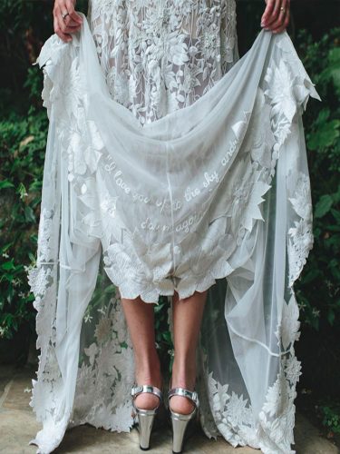 Em 2019, Hailey Baldwin usou um véu catedral bordado com as palavras “Till Death Do Us Part (Até a que a morte nos separe)”. Em 2020, veremos o boom dessa tendência dos bordados personalizados contando, de maneira exclusiva, a história de amor dos noivos. Pode ser qualquer coisa que tenha um significado especial, de versículos da Bíblia, data e nome dos noivos, poemas até uma mensagem de amor.