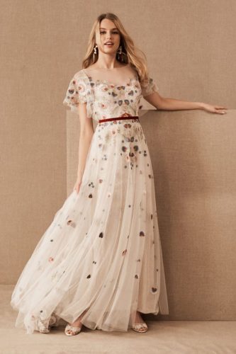 Vamos ver também muitos vestidos estampados ou bordados, multicoloridos com os temas florais e borboletas.