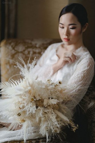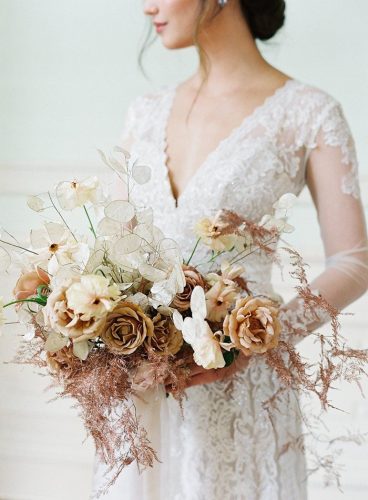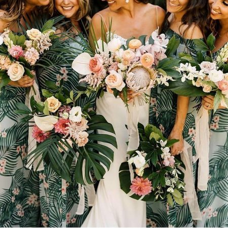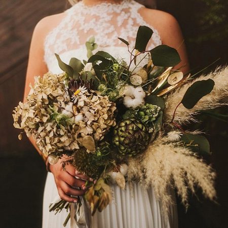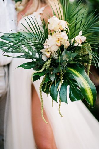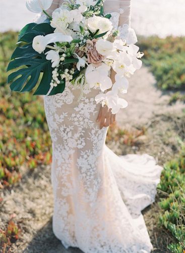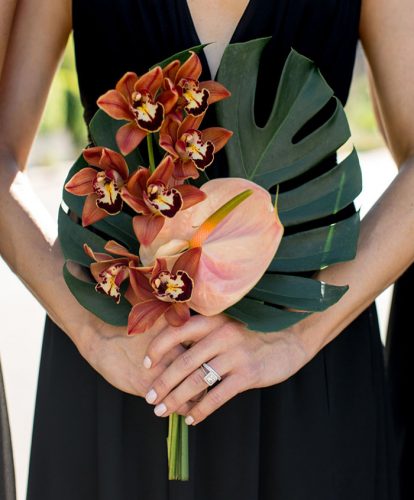 Tá rolando uma revolução nos elementos que compõem um buquê de noiva! Lembram o que comentamos sobre as decorações tropicais no nosso post de temas? O tropicalismo chegou nos buquês também, e vamos ver muitos buquês de noiva de Costela de Adão, antúrios, algodão e de folhagens e flores secas pintadas- misturadas ou não- com as frescas.
