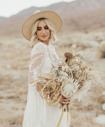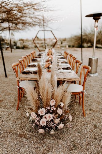 Resumidamente, o Deserto Chique é perfeito para as noivas boho e folk que desejam adicionar elegância a uma paisagem mais árida com cores que o complementam ou se destacam criando um contraste aconchegante. É mais inspirado na pegada urbana, mas com uma sensação totalmente orgânica.